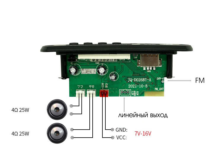 Усилитель мощности зука 2*25W плата Bluetooth, AUX, USB, TF, FM 7-16 В / JQ-D026BT amplifier 2*25W интересное: