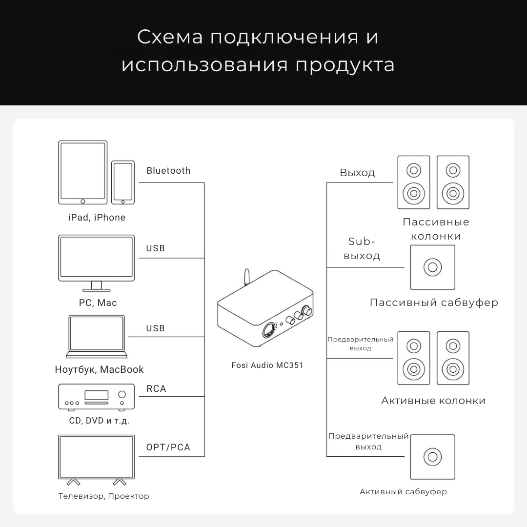 Усилитель Fosi Audio MC351 с блоком питания 32В интересное: