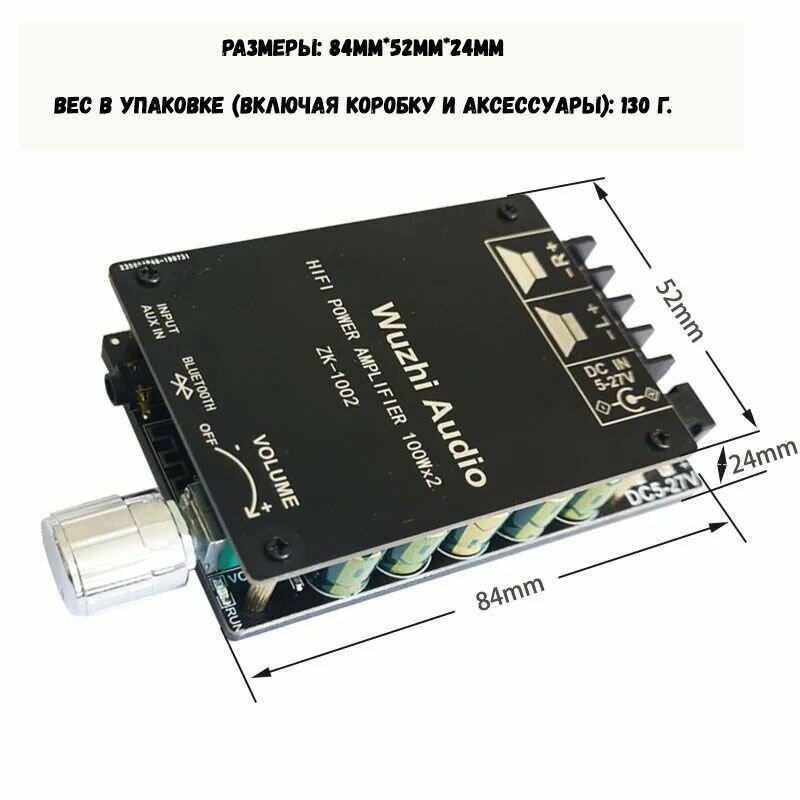 Усилитель звука для колонок 2X100 Вт c Bluetooth 5.0, чип TPA3116 ZK-1002 - декодер плата класса d интересное:
