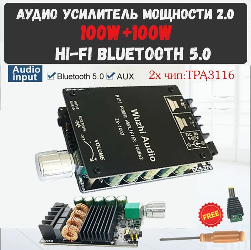 Купить Усилитель звука для колонок 2X100 Вт c Bluetooth 5.0, чип TPA3116 ZK-1002 - декодер плата класса d