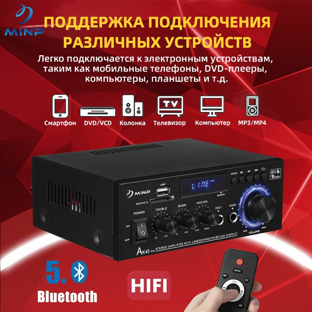 AK45PROусилитель звука,2.1-сабвуфер для автомобиля , домашний, усилитель звука для колонок500BT+500BT интересное: