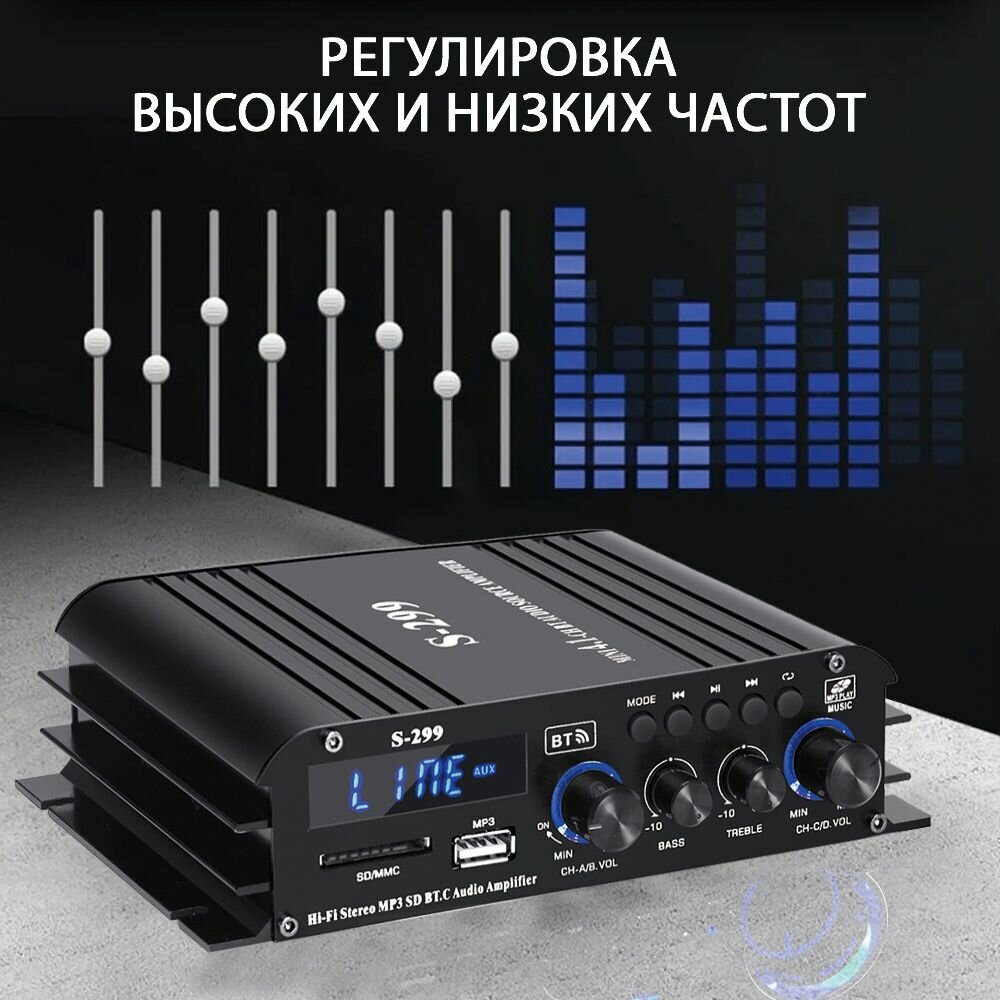 Yсилитель звука для колонок, Bluetooth 5.0/S299,4. 1 усилитель звука, RCA/USB/С дистанционным управлением.160BT*4 интересное: