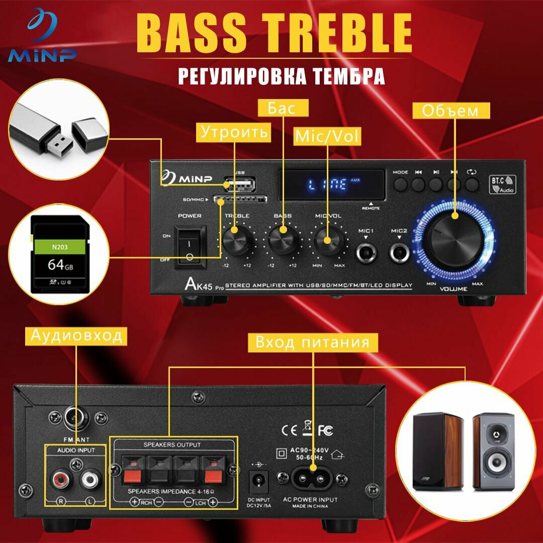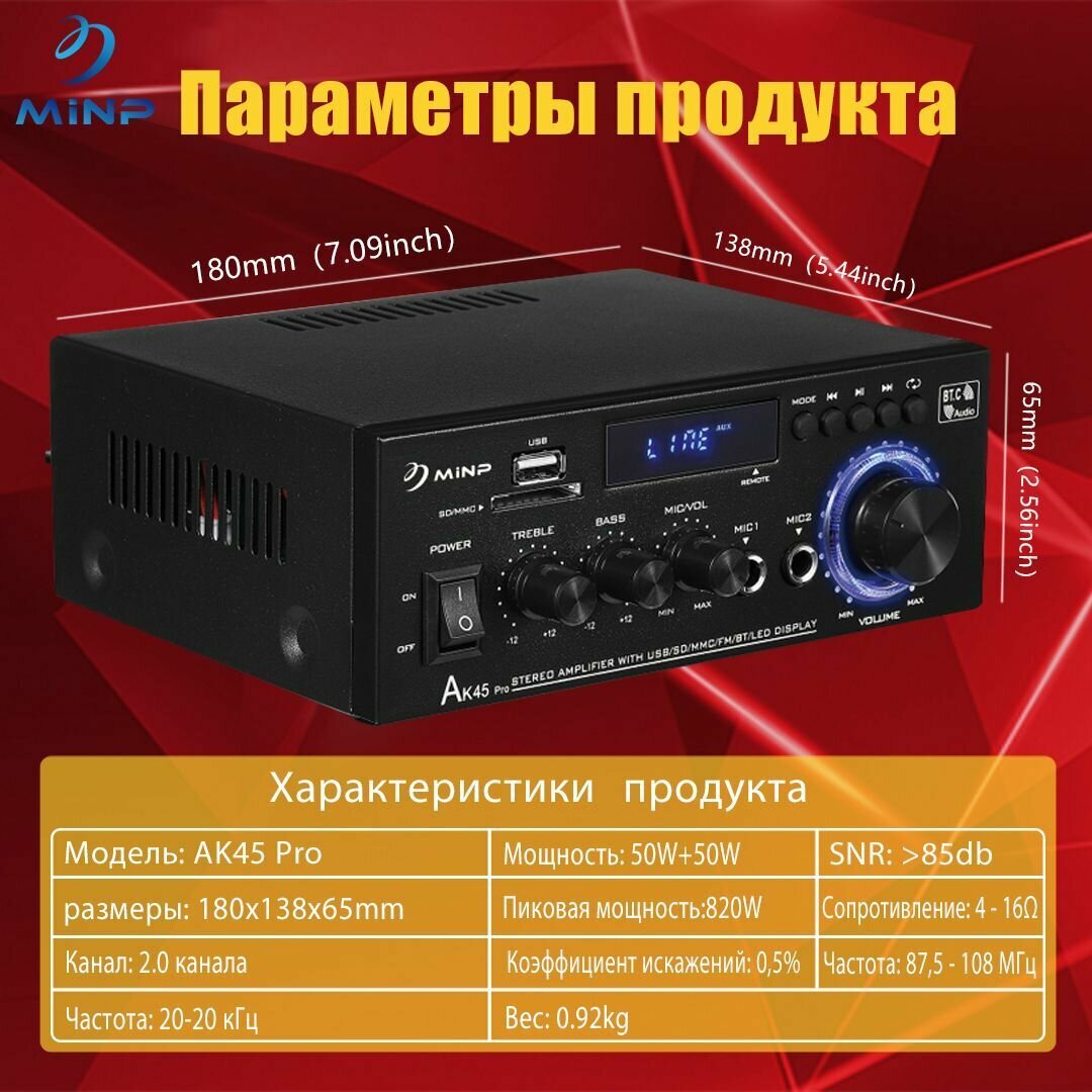 Усилитель звука для колонок, AK45PRO2.1 усилитель звука, Bluetooth 5.0, FM интересное: