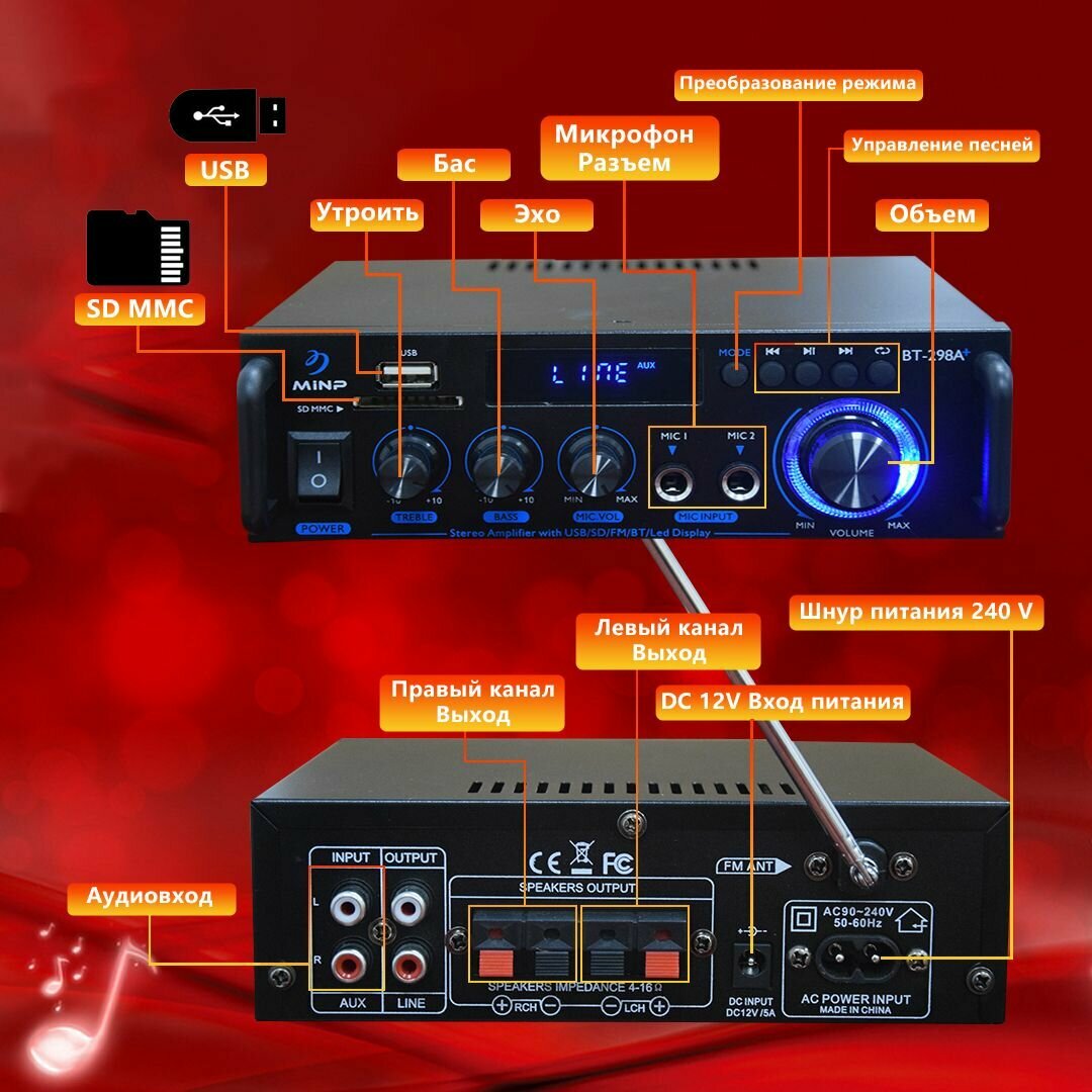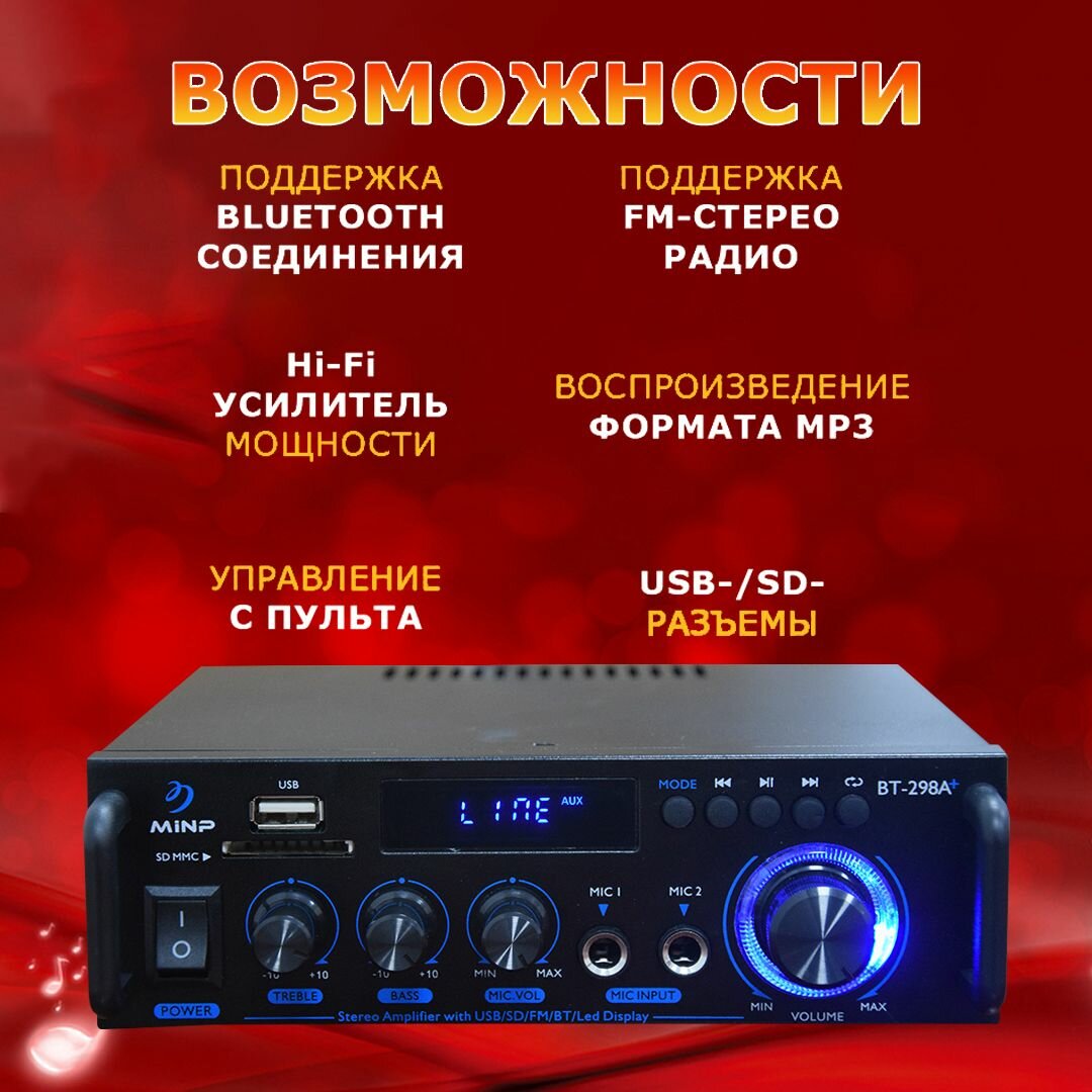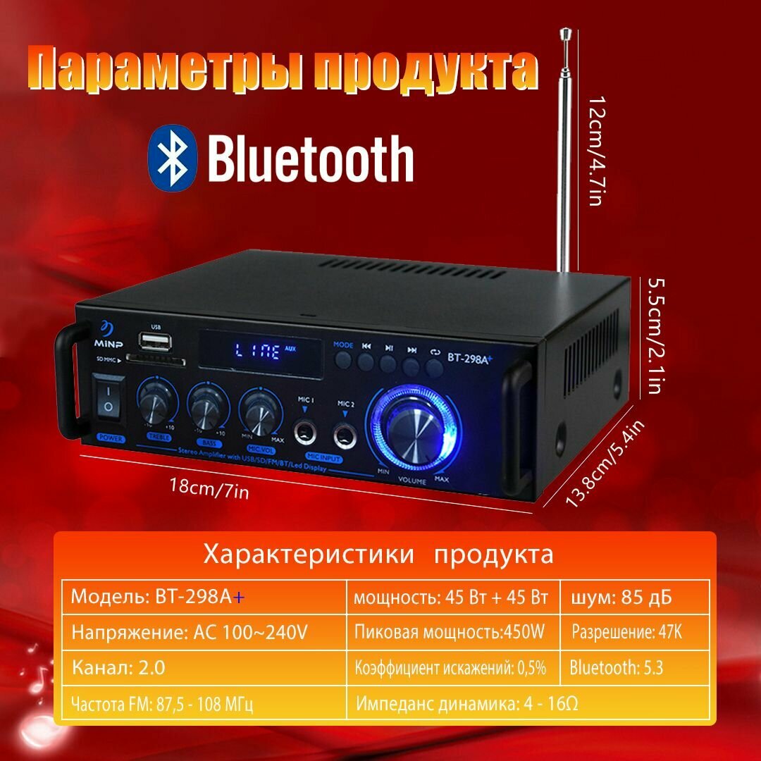 Усилитель для колонок/аудио усилитель, 298A+ Hi Fi с Bluetooth5.3, FM интересное: