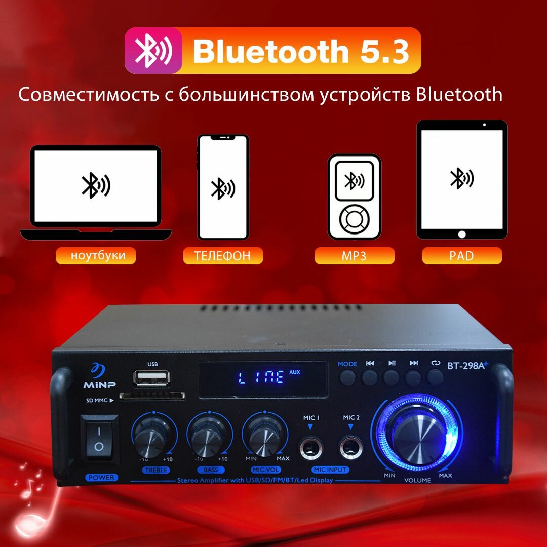 Усилитель звука 2.1. BT-298A+, усилитель звука динамика, Bluetooth 5.3, RCA/USB, 500BT+500BT интересное: