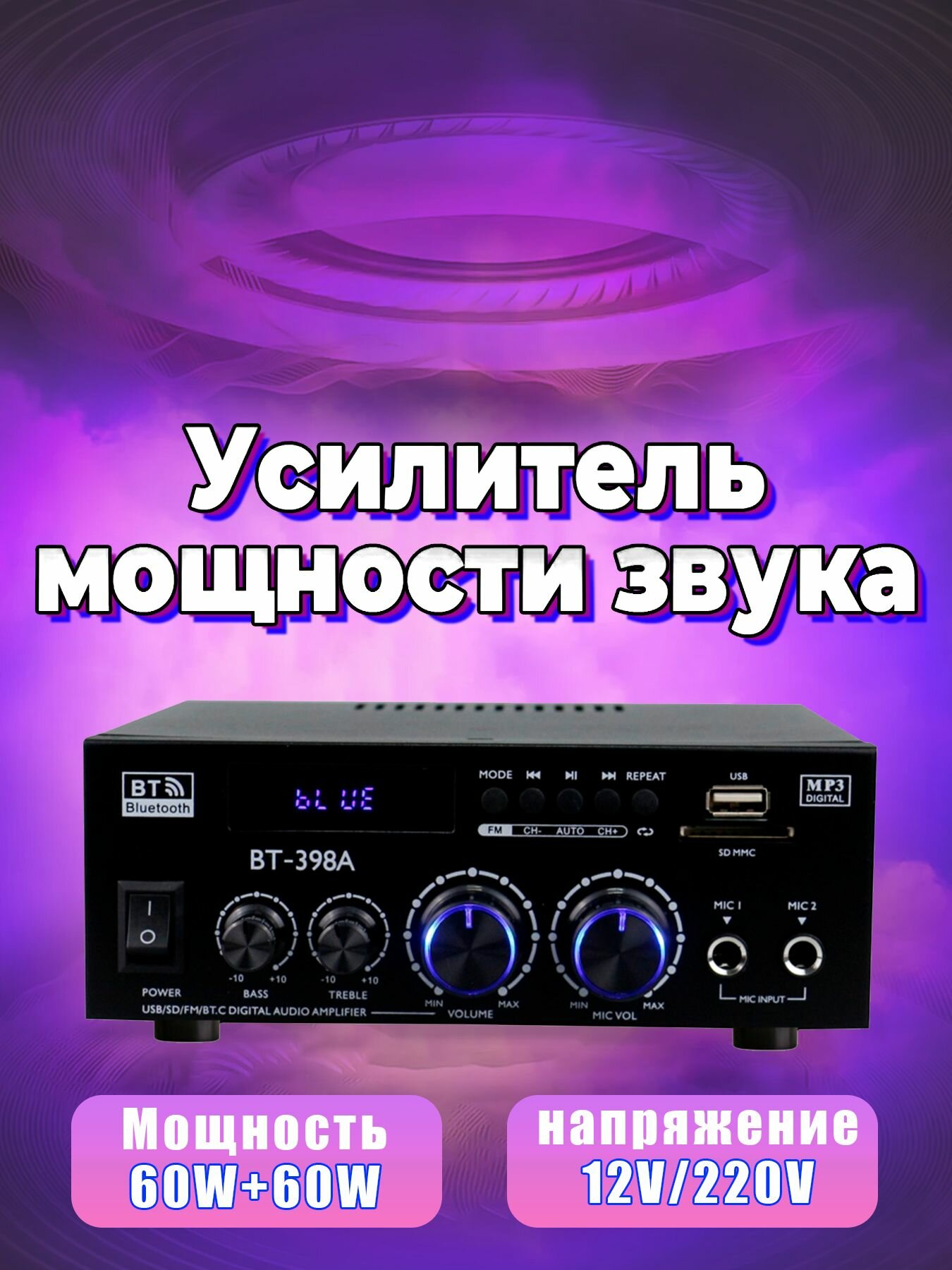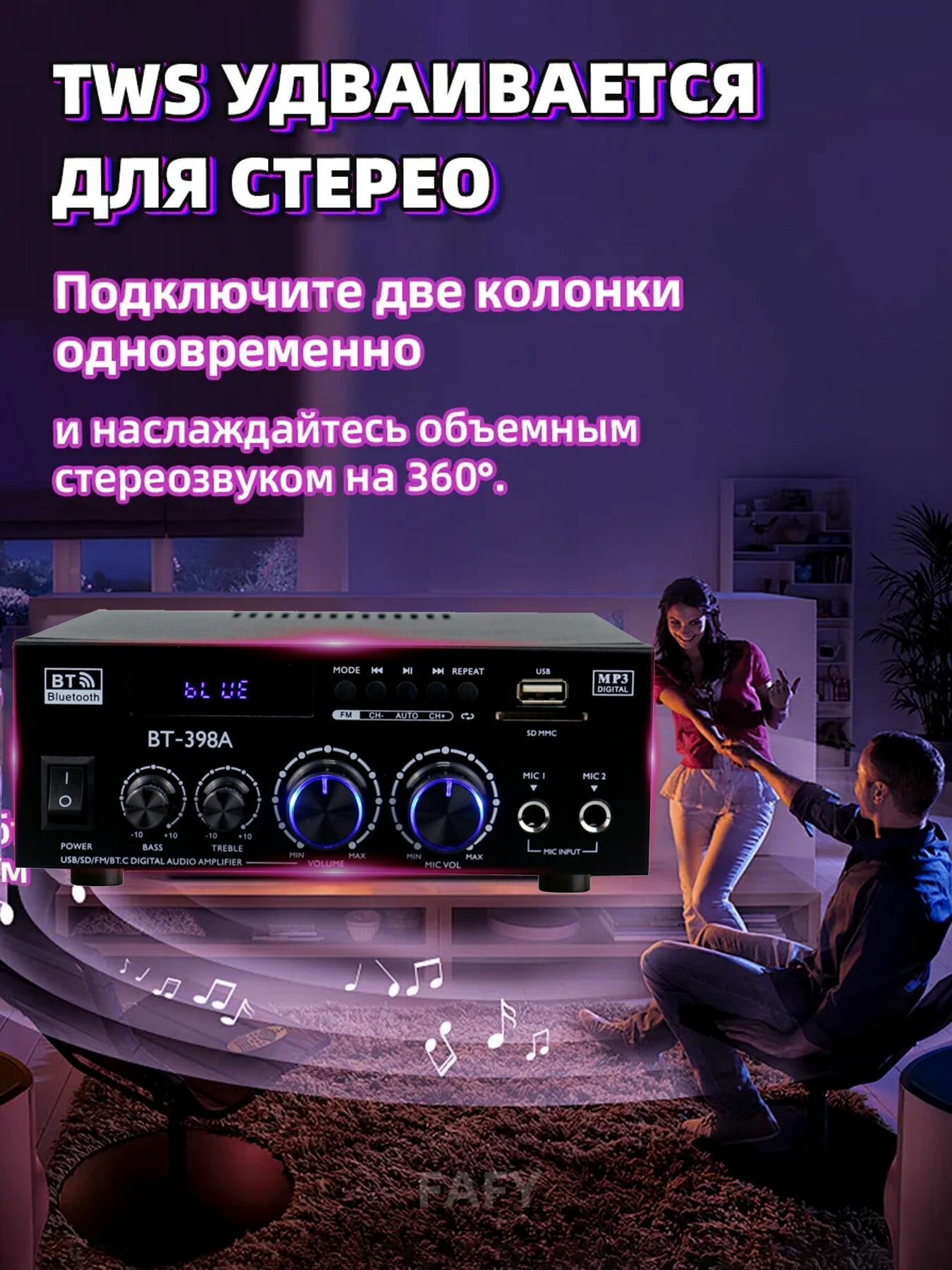Yсилитель звука для колонок, BT398A, аудио ресивер, bluetooth5.3,2.1, FM/USB/SD/RCA,600BT+600BT интересное: