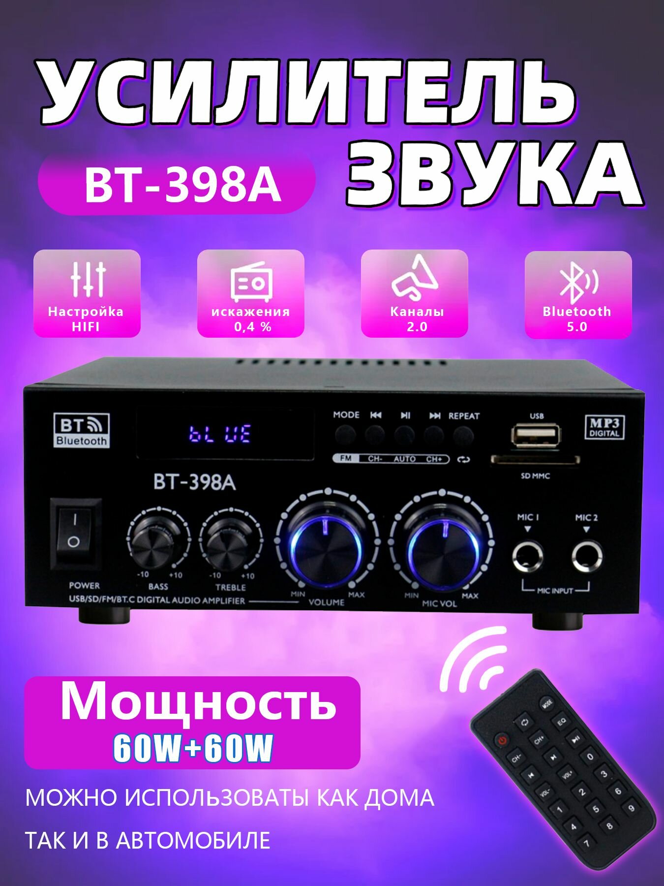Купить Yсилитель звука для колонок, BT398A, аудио ресивер, bluetooth5.3,2.1, FM/USB/SD/RCA,600BT+600BT