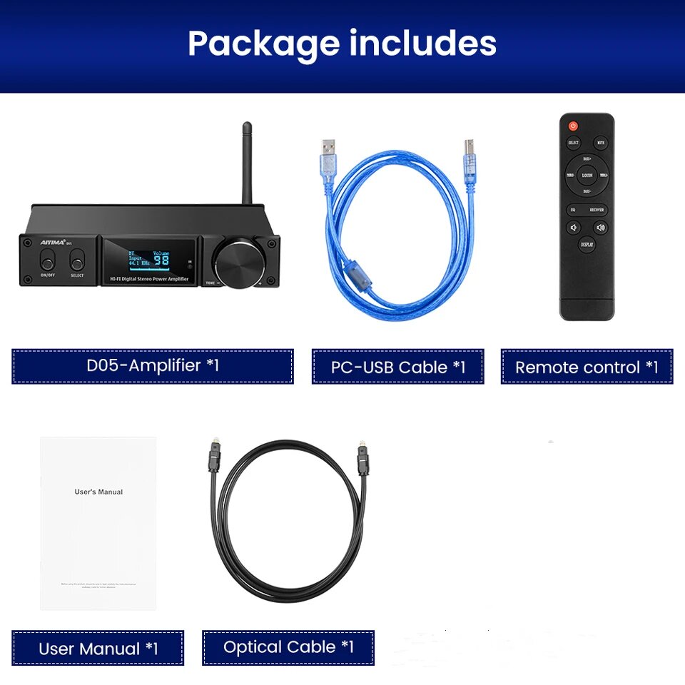 AIYIMA Audio D05 черный Bluetooth усилитель 120 Вт 2.1, with 36V EU plug