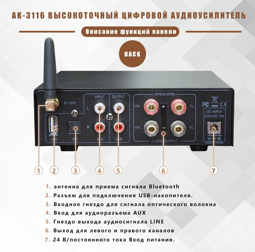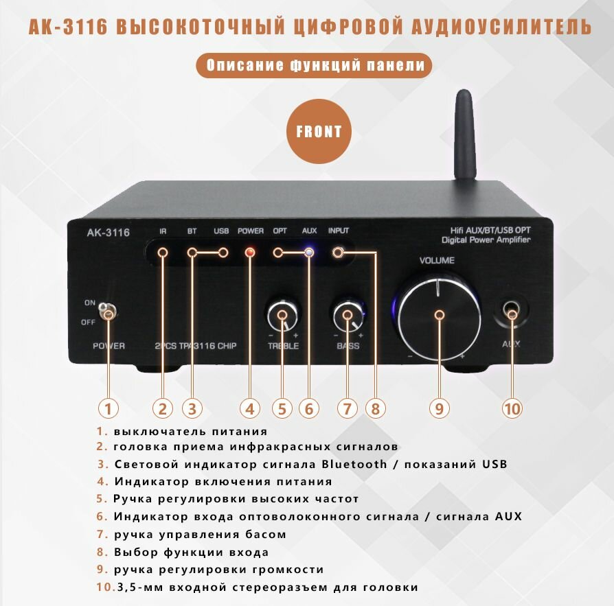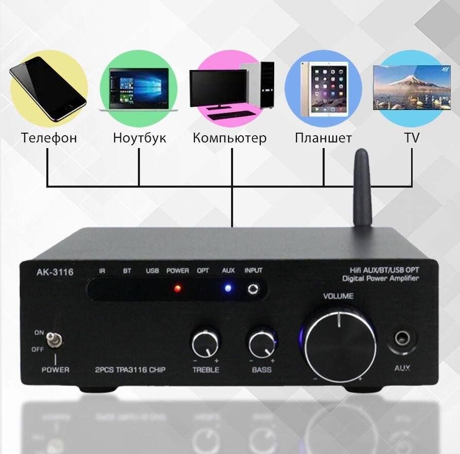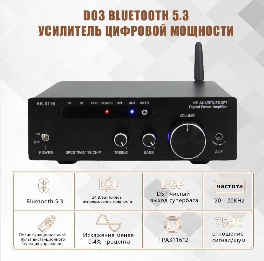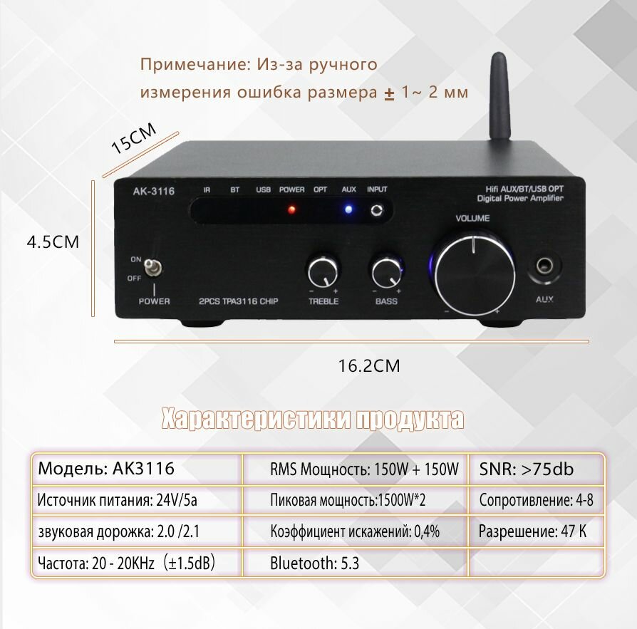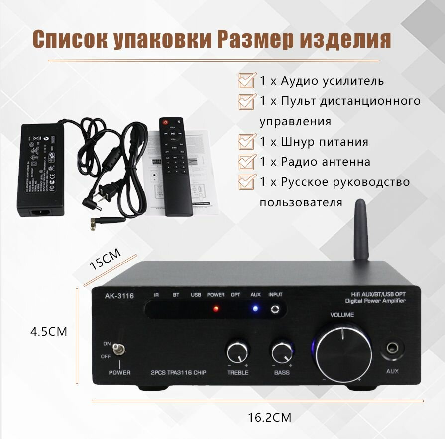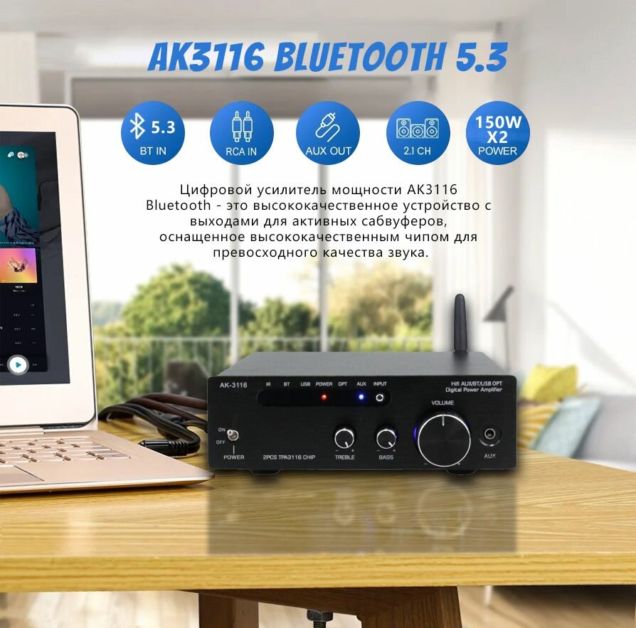 Интегральный усилитель 2.1, RC-AK3116, Bluetooth 5.3, Hi Fi усилитель звука, Поддержка ввода оптоволокна1500BT+1500 BT интересное: