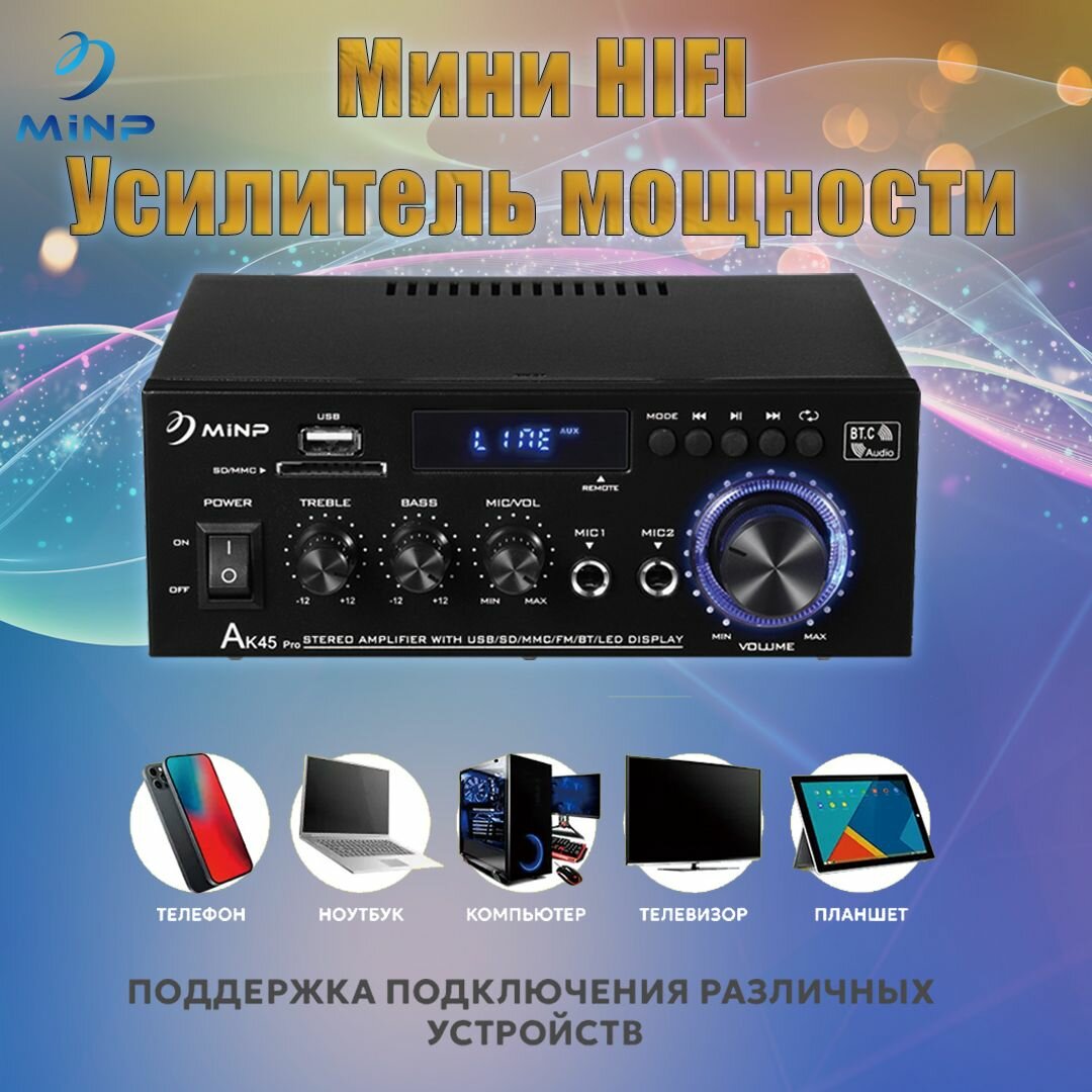 Усилитель звука 2.1 HI-FI усилитель звука для колонок, AK45Pro, 500BT+500BT USB, MIC, FM интересное: