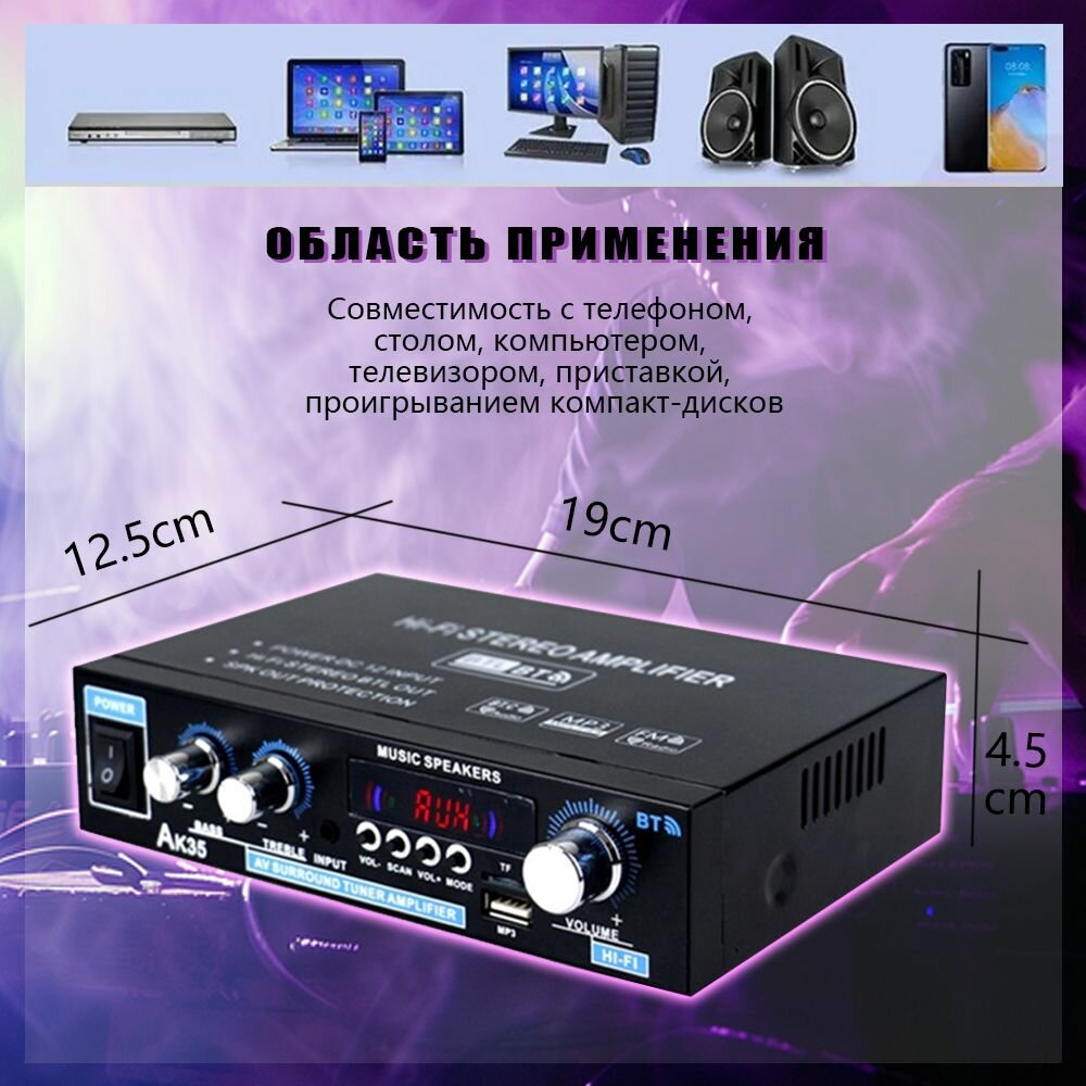Yсилитель звука,2.1, AK35, интегральный усилитель звука, bluetooth5.0, USB/TF/RCA,300bt+300bt интересное: