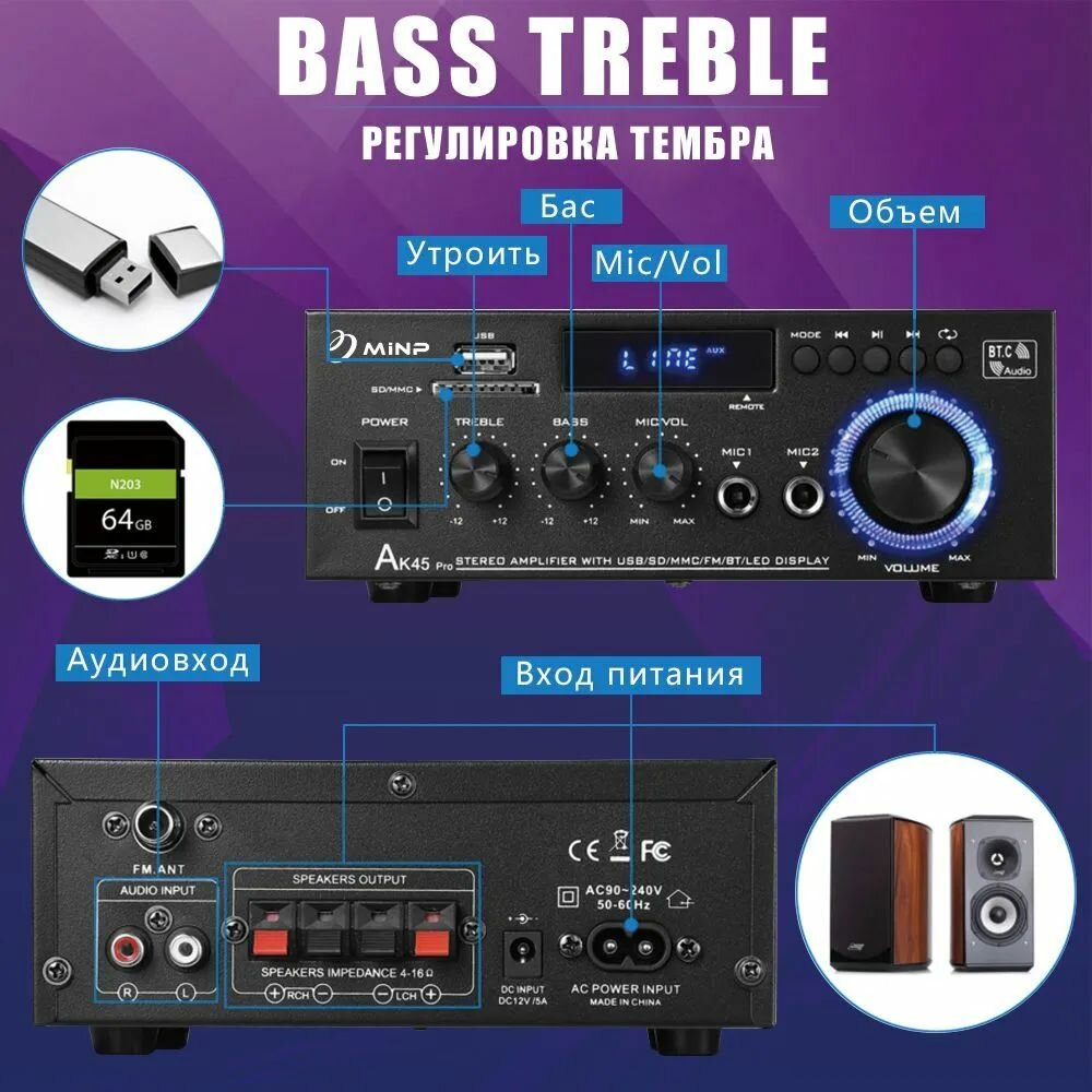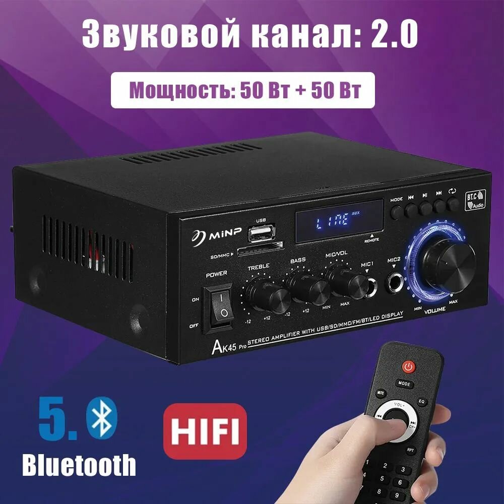 Yсилитель звука для колонок, HI-FI, AK45Pro, усилитель звука 2.1, Bluetooth 5.3, RCA/USB.500BT+500BT интересное: