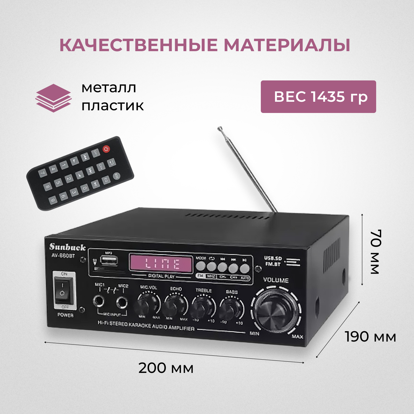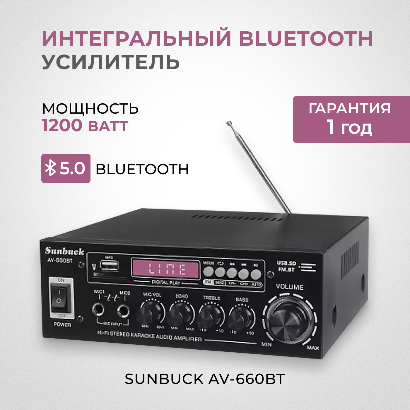 Интегральный Bluetooth усилитель Sunbuck AV-660BT (1200 Вт, USB, цвет черный) интересное: