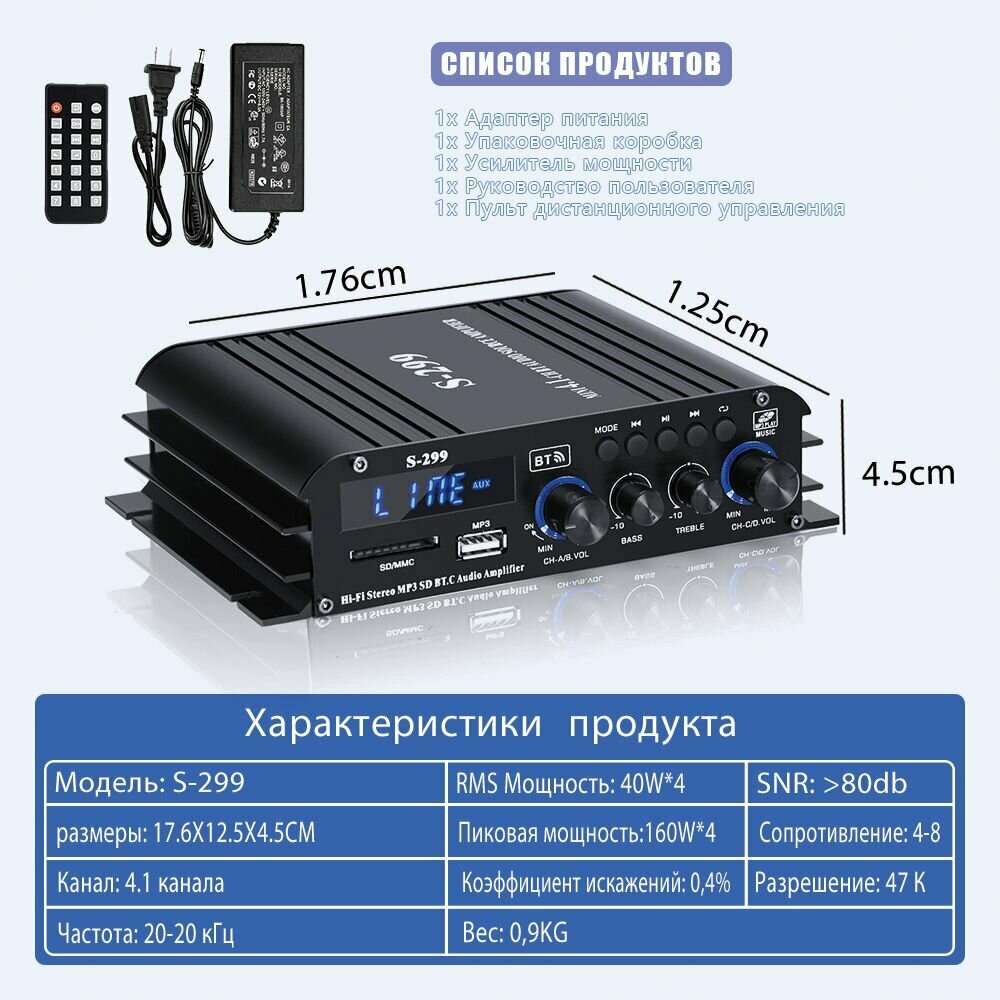 Yсилитель звука 4.1, S299, усилитель для колонок , блютуз 5.3,160bt*4 интересное: