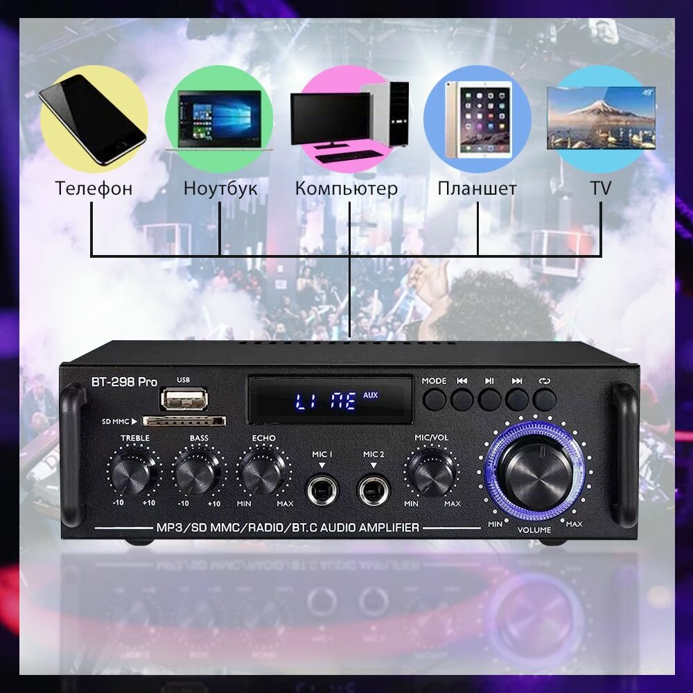 Yсилитель звука для колонок, Bluetooth 5.0, 2.1 усилитель звука,500bt+500bt интересное: