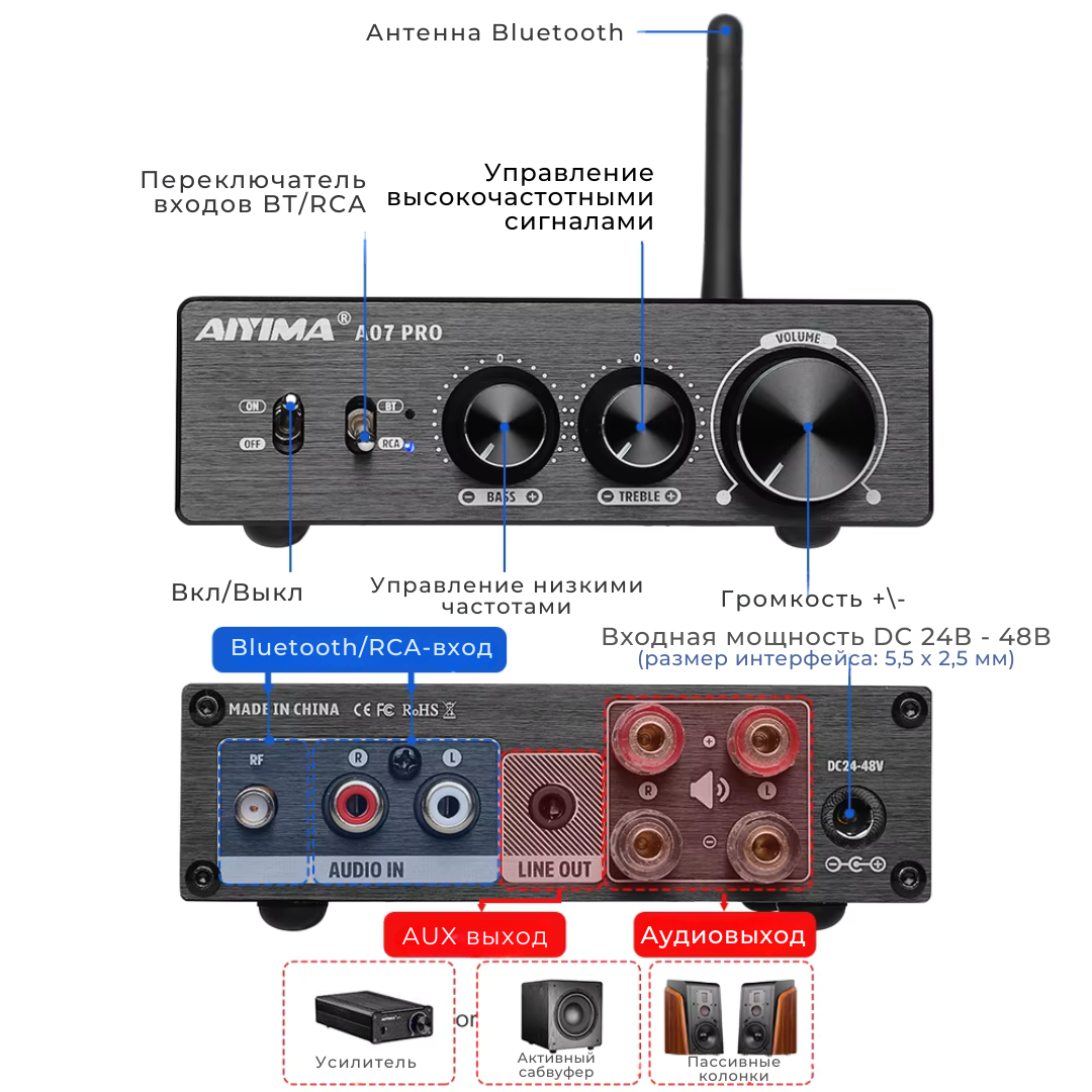 Усилитель AIYIMA A07 Pro с блоком питания 36В интересное: