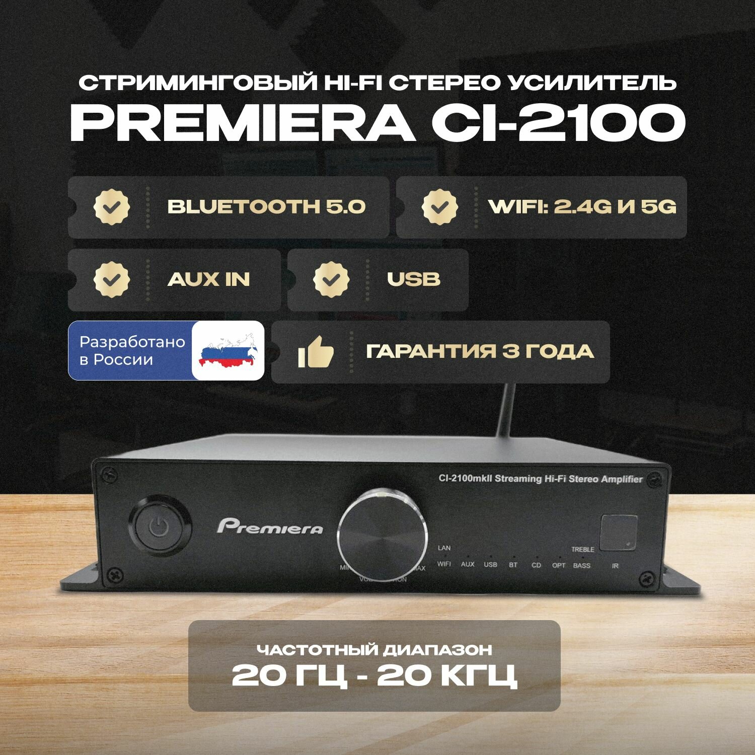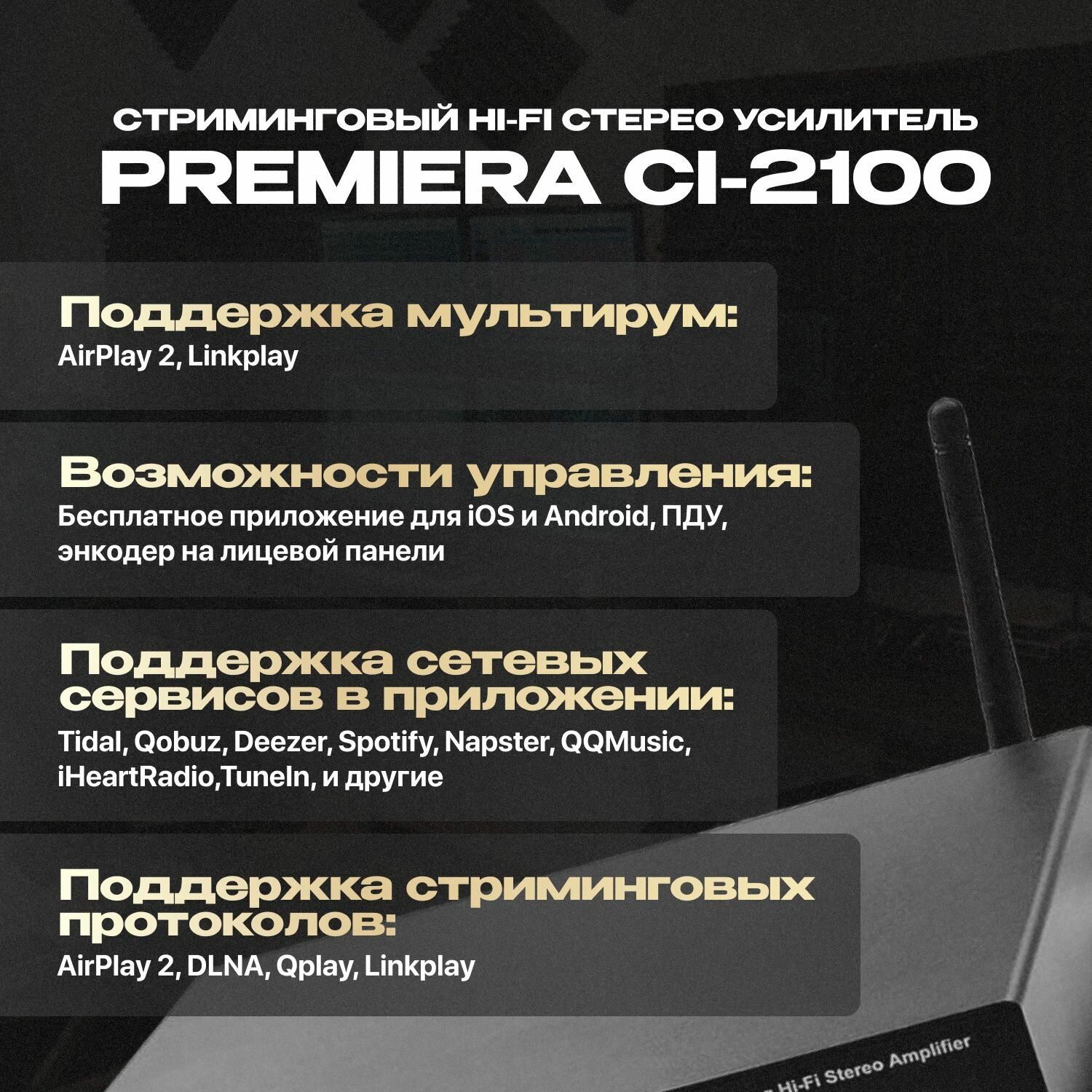 Купить Усилитель стриминговый Premiera CI-2100 MKII, с мультирумной связью, Hi-Fi, аудио 24бит/192кГц