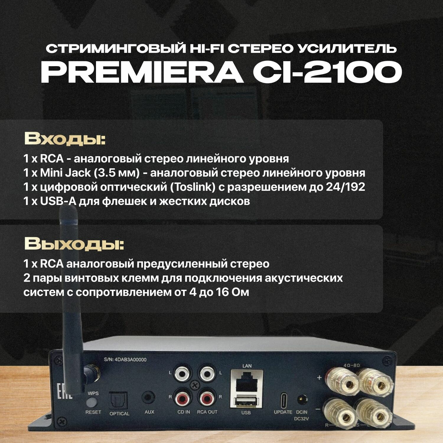 Усилитель стриминговый Premiera CI-2100 MKII, с мультирумной связью, Hi-Fi, аудио 24бит/192кГц интересное: