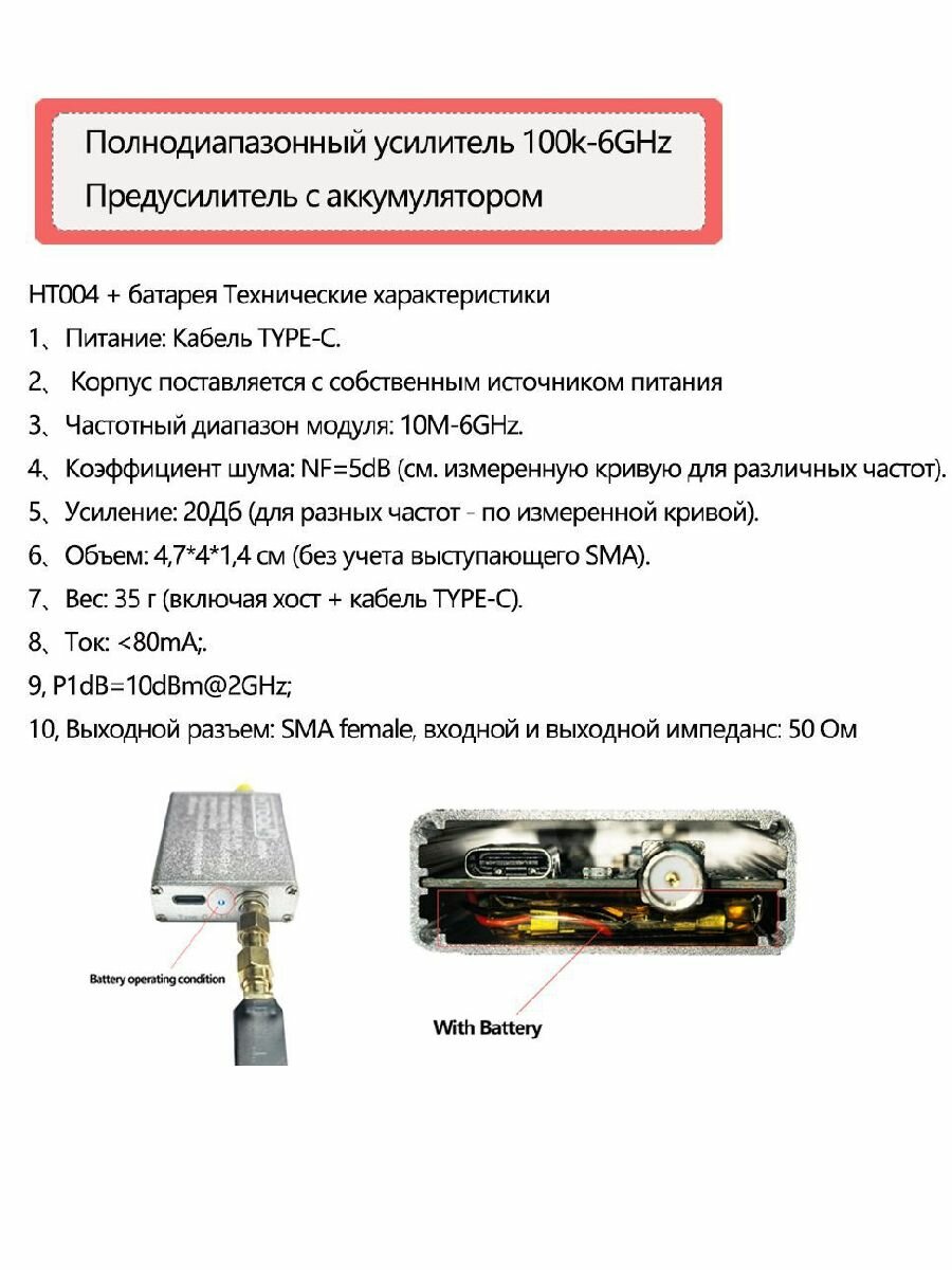 HT004 Усилитель сигнала малошумящий 100k-6GHz Широкополосный предусилитель Gain 20DB LNA интересное: