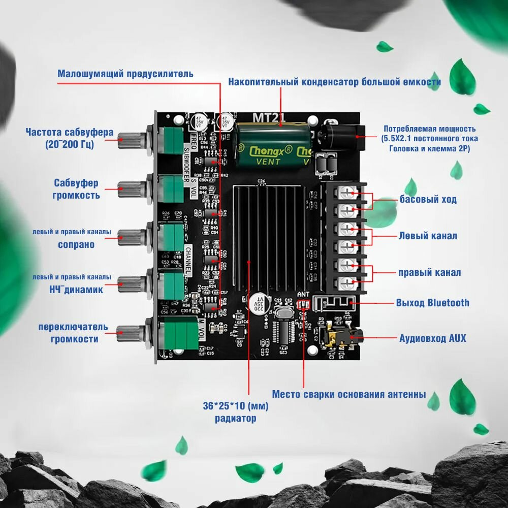 MT21 Bluetooth динамик усилитель звука 2.1канала, усилитель для колонок 50bt