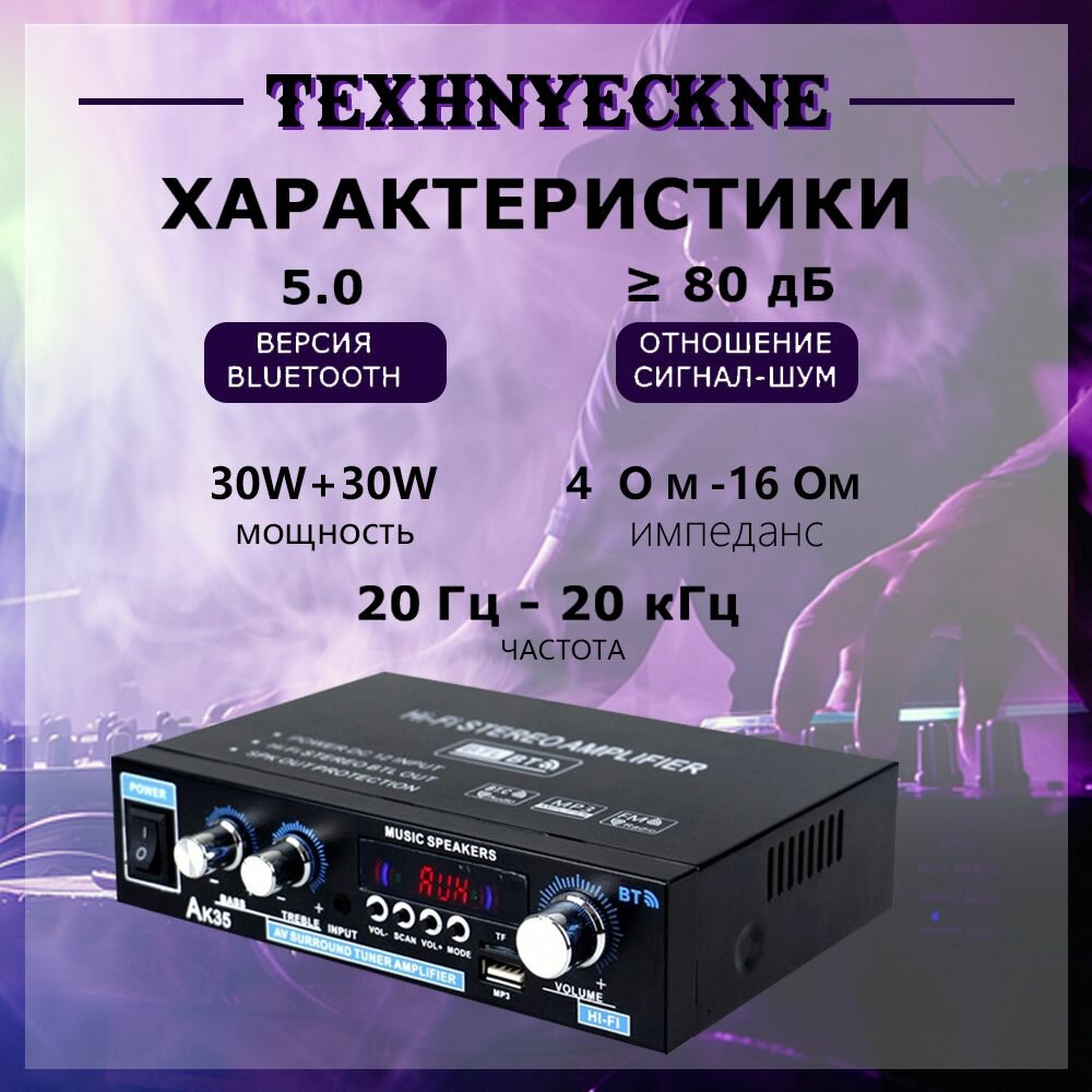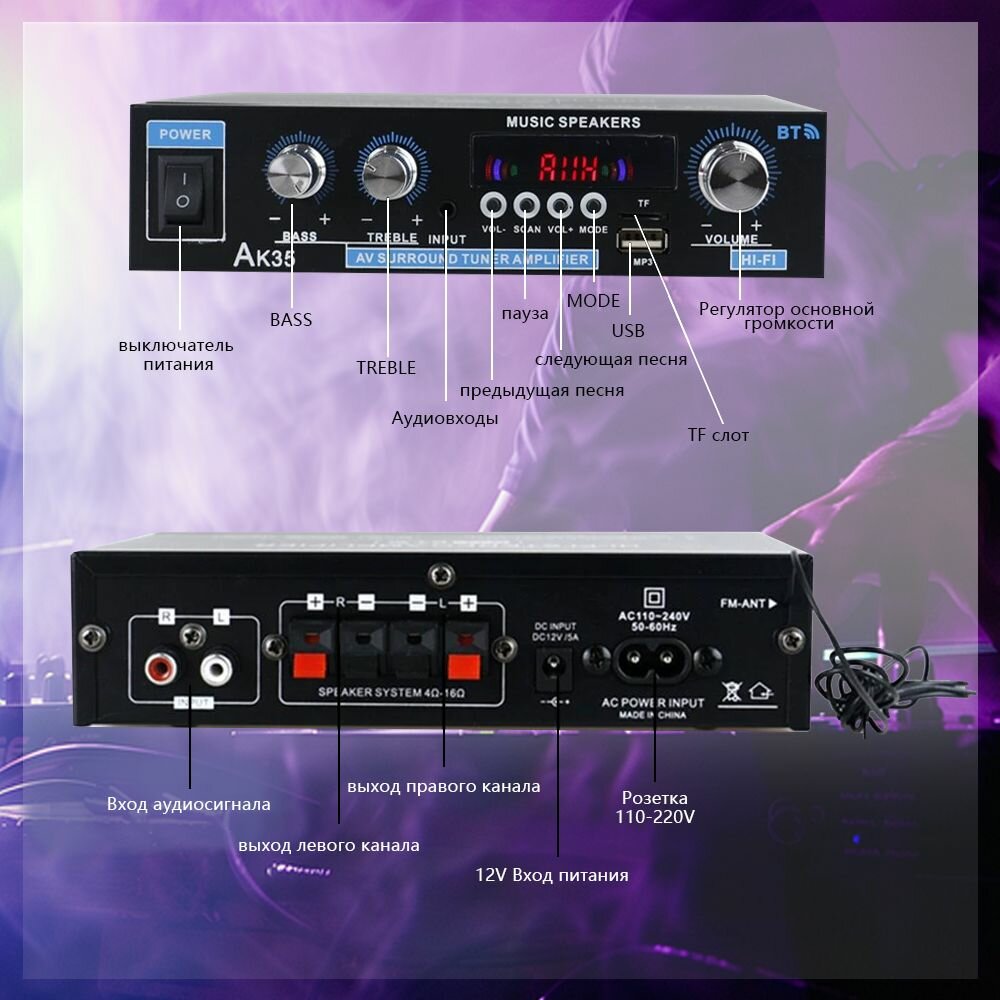 Ниже Вы можете прочитать отзывы на 300 Вт+300 Вт усилитель для колонок с блютуз, усилитель звука для колонок AK35, FM/SD/RAM/USB, ознакомится с подробными характеристиками, посмотреть интересные обзоры и фотографии на 300 Вт+300 Вт усилитель для колонок с блютуз, усилитель звука для колонок AK35, FM/SD/RAM/USB.