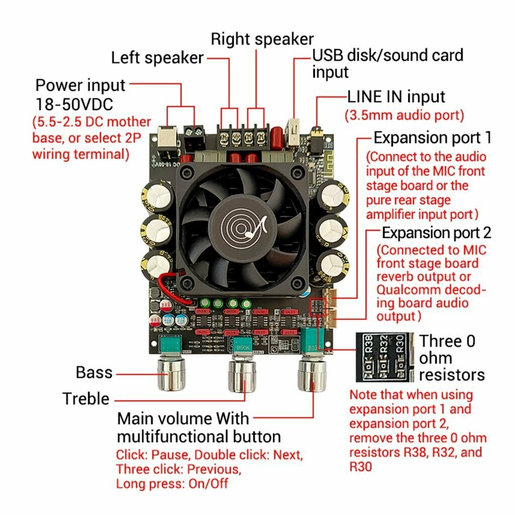 Плата цифрового усилителя мощности Bluetooth 3002T со встроенным потенциометром