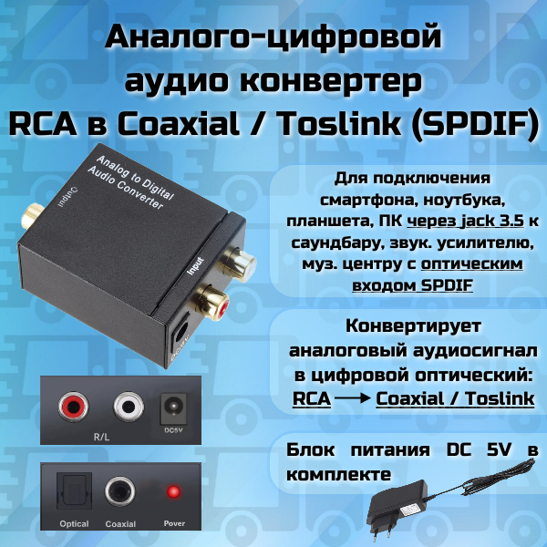 Аналого цифровой аудио конвертер RCA тюльпаны на Coaxial / Toslink оптика АЦАП (однонаправленный) ацп интересное: