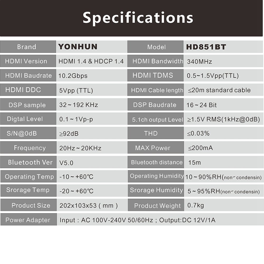 Купить HD851BT DTS AC3 5.1 Audio Converter Decoder HDMI Extractor 4K ARC SPDIF Coxial Optical Splitter с блютус-США Plug
