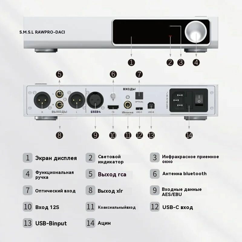 SMSL RAWPRO-DAC1 Декодер MQA DAC ES9039MSPro Поддержка Bluetooth 5.1 LDAC DSD512 PCM768 с дистанционным управлением DAC1 интересное: