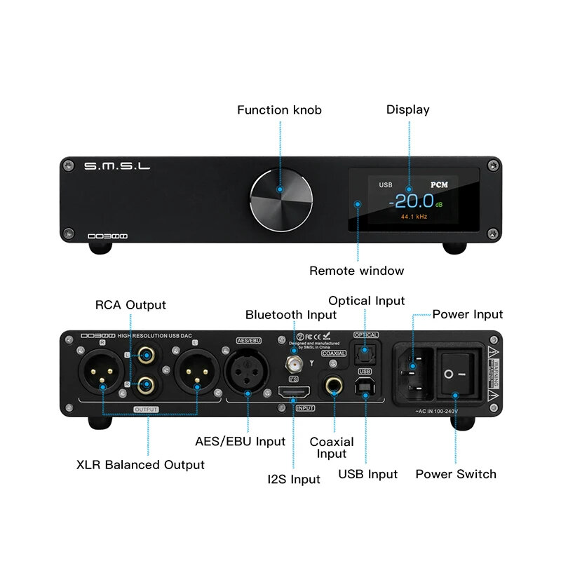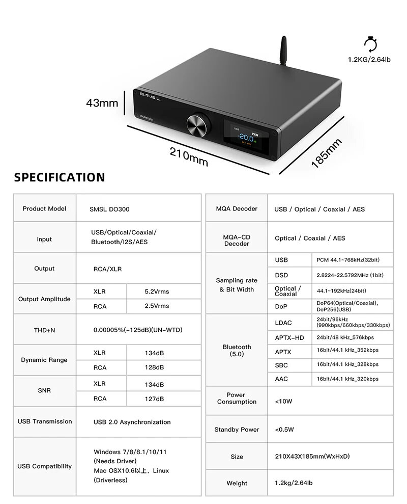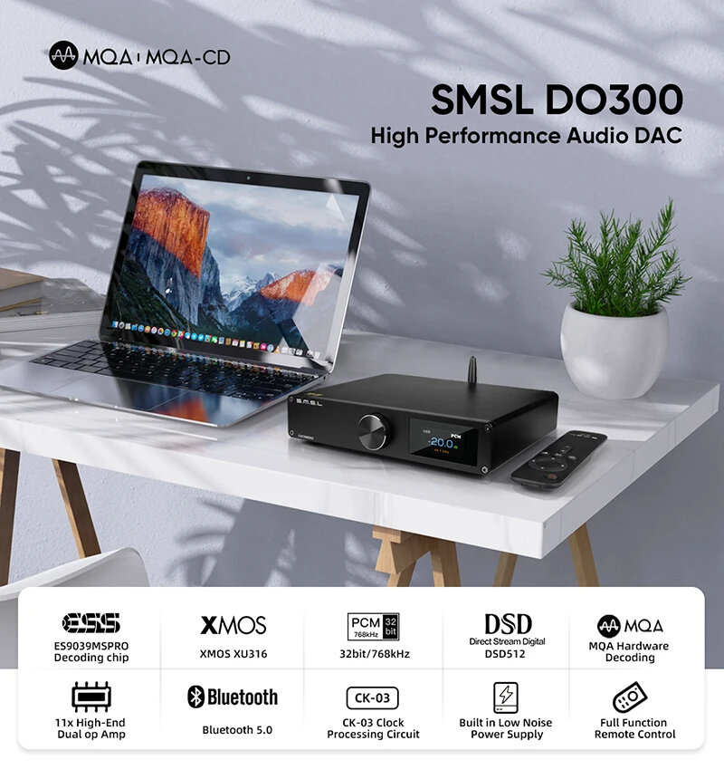 SMSL DO300 Audio DAC ES9039MSPRO MQA CD XMOS XU316 DSD512 32Bit 768KHZ Bluetooth LDAC XLR I2S декодер с дистанционным управлением D0300 интересное: