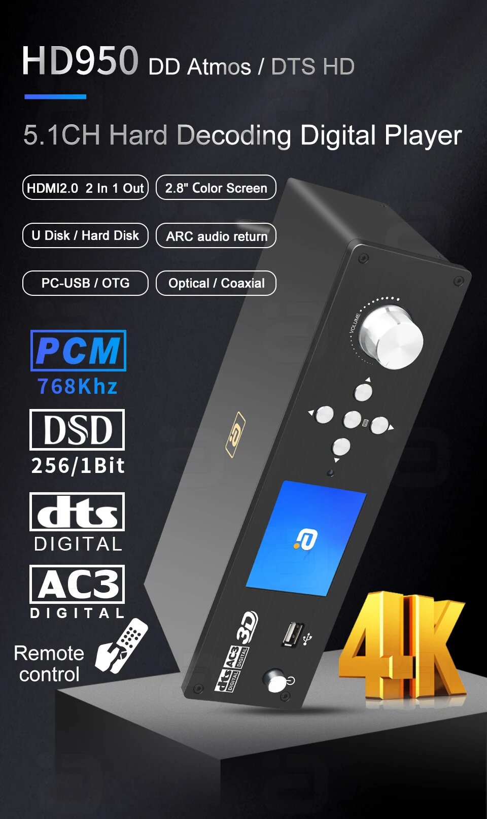 DTSHD Atmos 5.1CH Аудиодекодер HD950, EU Power Adapter интересное: