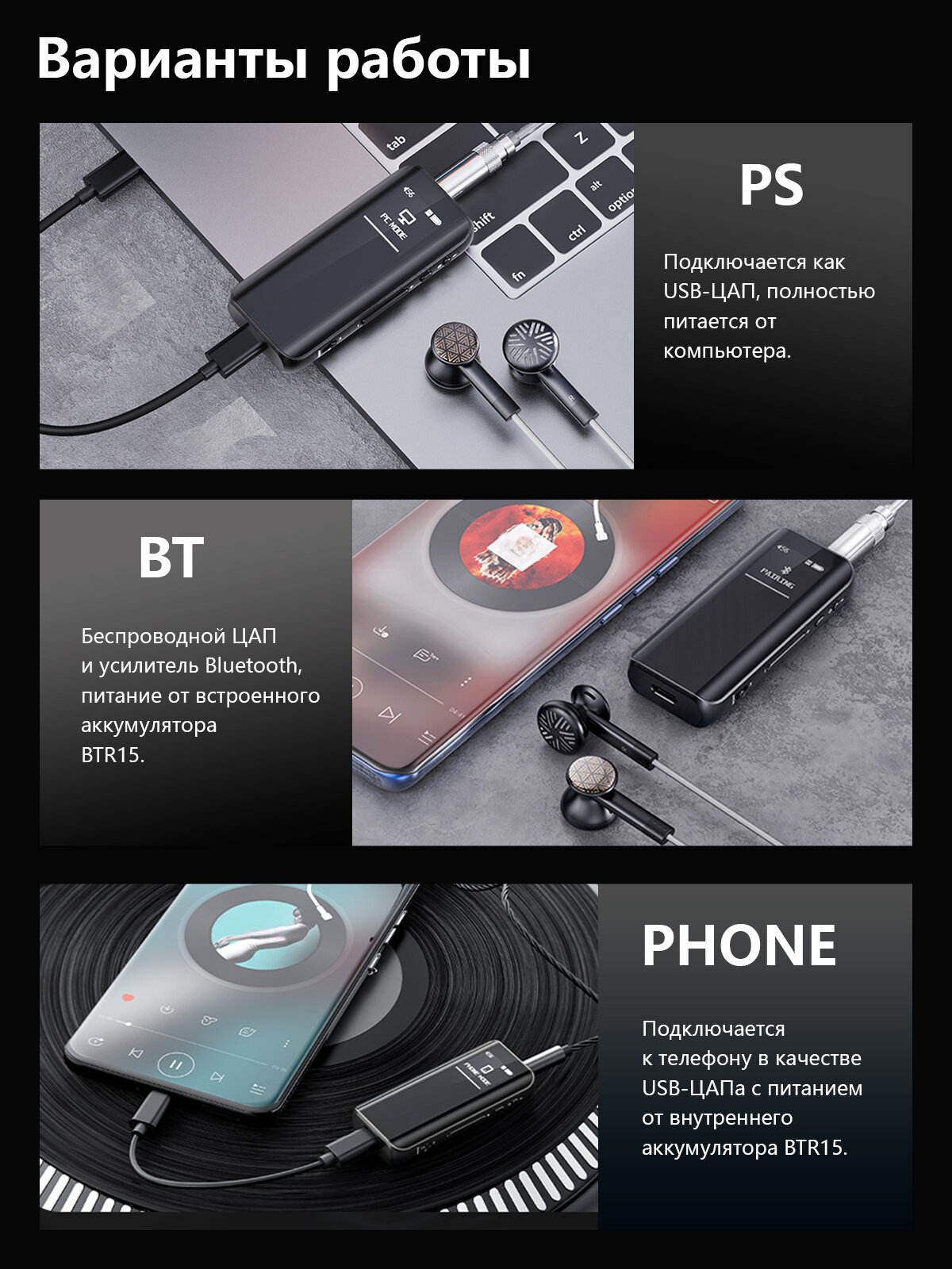ЦАП / Усилитель для наушников Fiio BTR15 (F3081B) Black интересное: