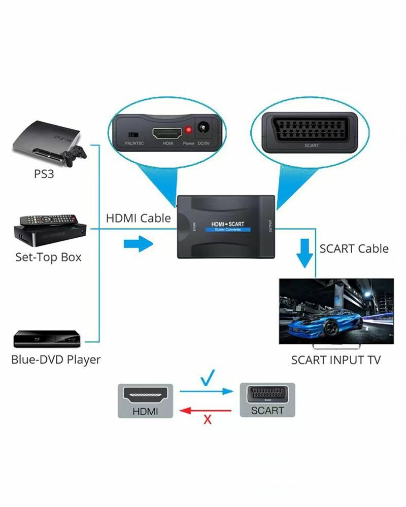 Купить Переходник-конвертер HDMI to Scart PAL/NTSC, черный