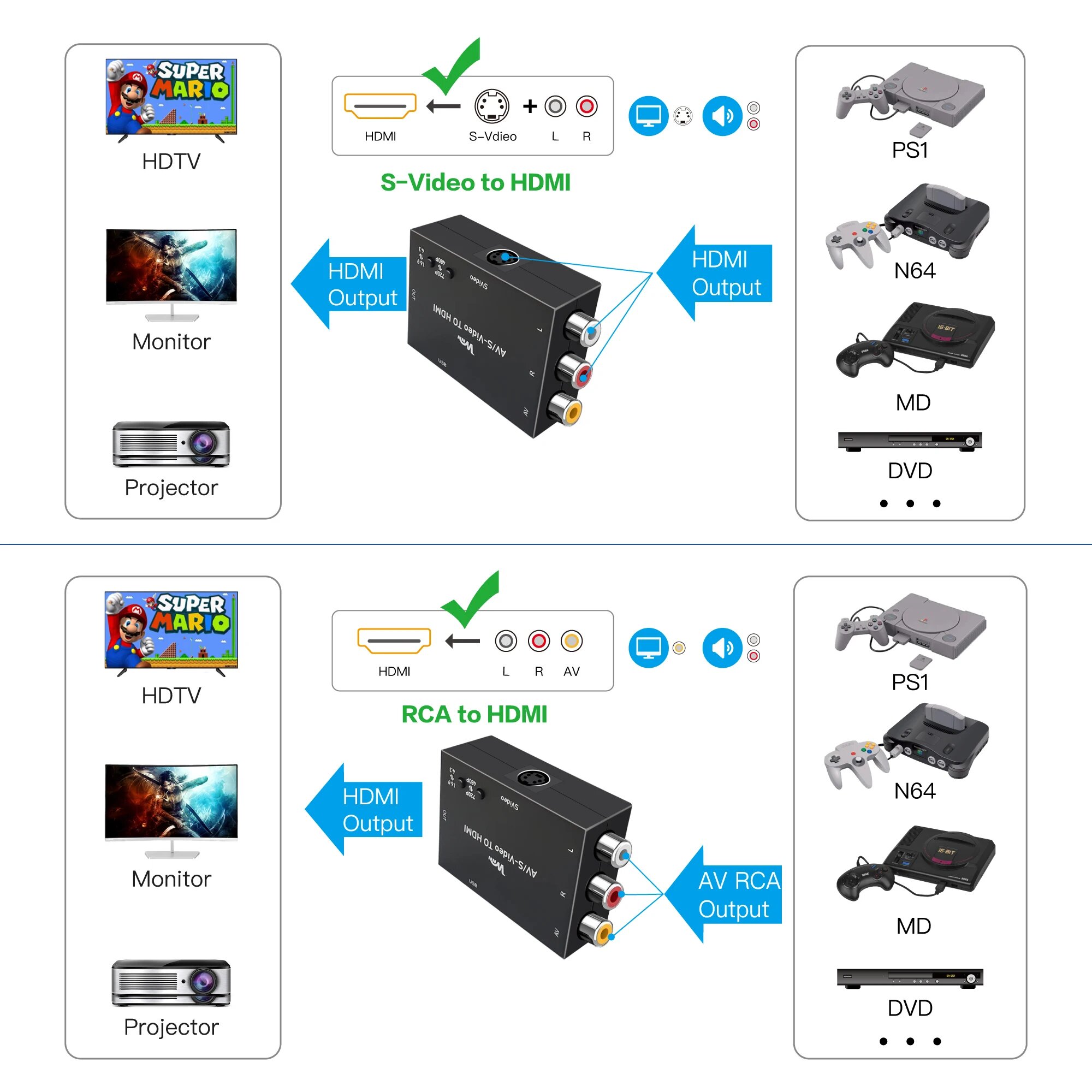 Купить Преобразователь AV/S-Video в HDMI, Черный