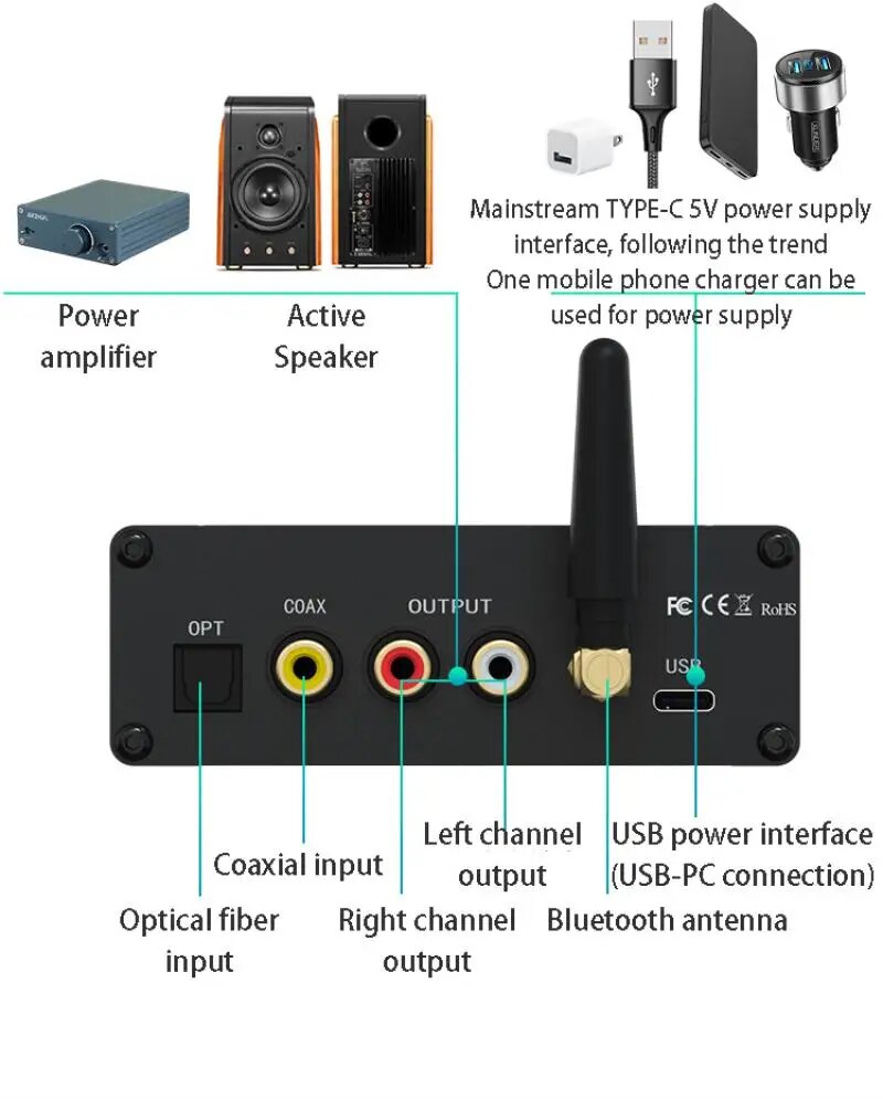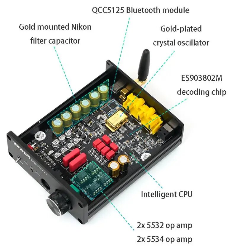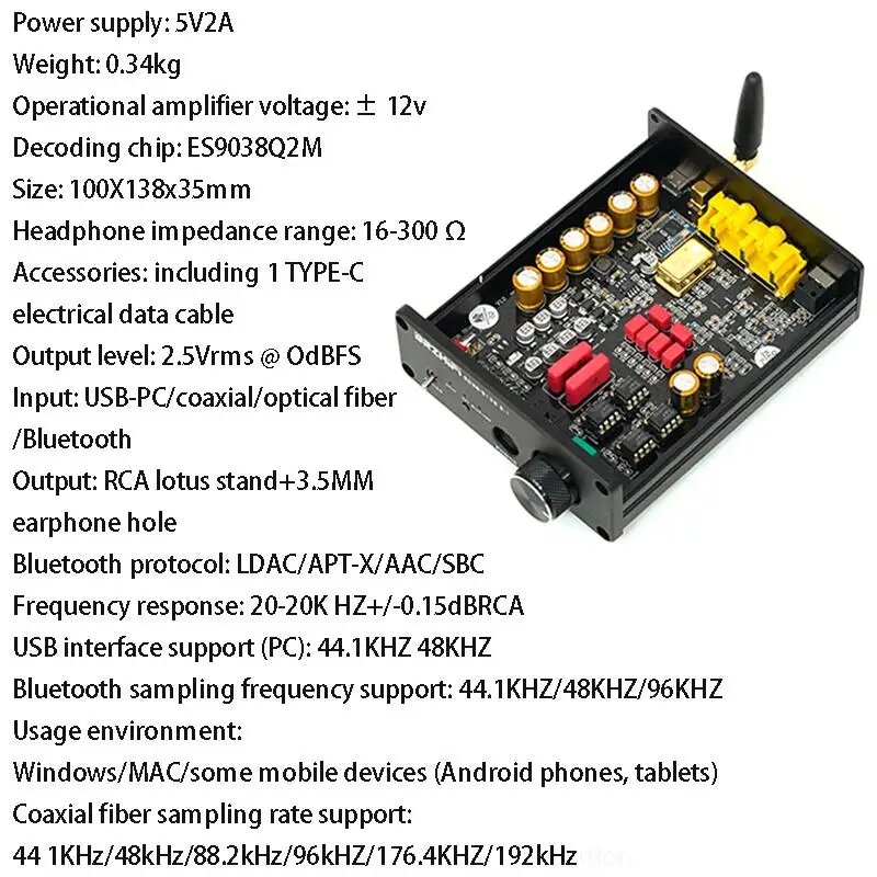 WAPUNO ES9038Q2M ЦАП Bluetooth 5.4, Black Upgraded