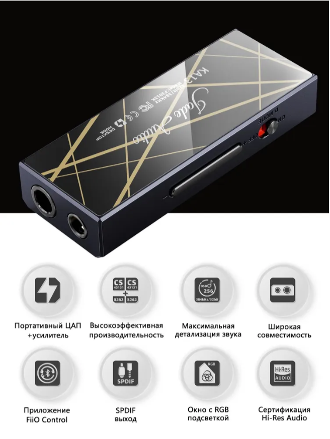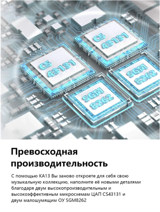 FiiO KA13 (F3013K) silver портативный цап/усилитель для наушников, 32 бит, Jack 3.5 мм, Jack 4.4 мм, RGB-подсветка интересное: