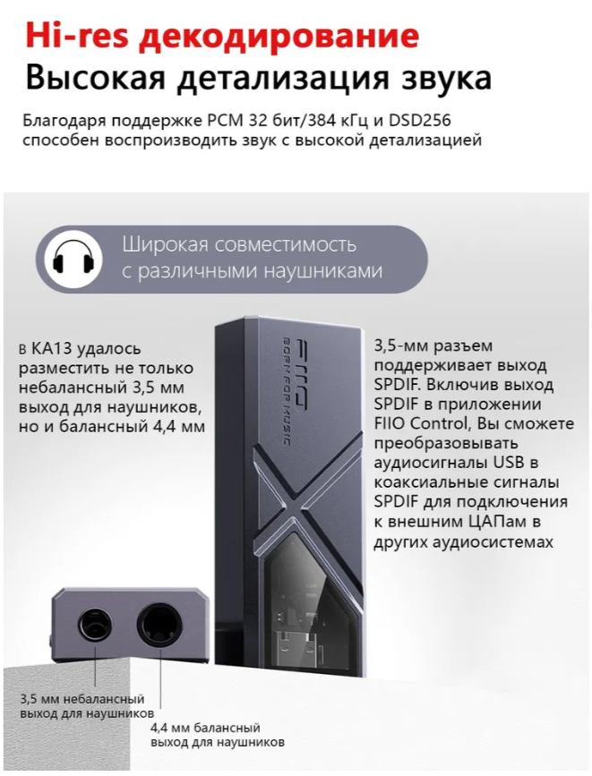 Ниже Вы можете прочитать отзывы на FiiO KA13 (F3013K) silver портативный цап/усилитель для наушников, 32 бит, Jack 3.5 мм, Jack 4.4 мм, RGB-подсветка, ознакомится с подробными характеристиками, посмотреть интересные обзоры и фотографии на FiiO KA13 (F3013K) silver портативный цап/усилитель для наушников, 32 бит, Jack 3.5 мм, Jack 4.4 мм, RGB-подсветка.