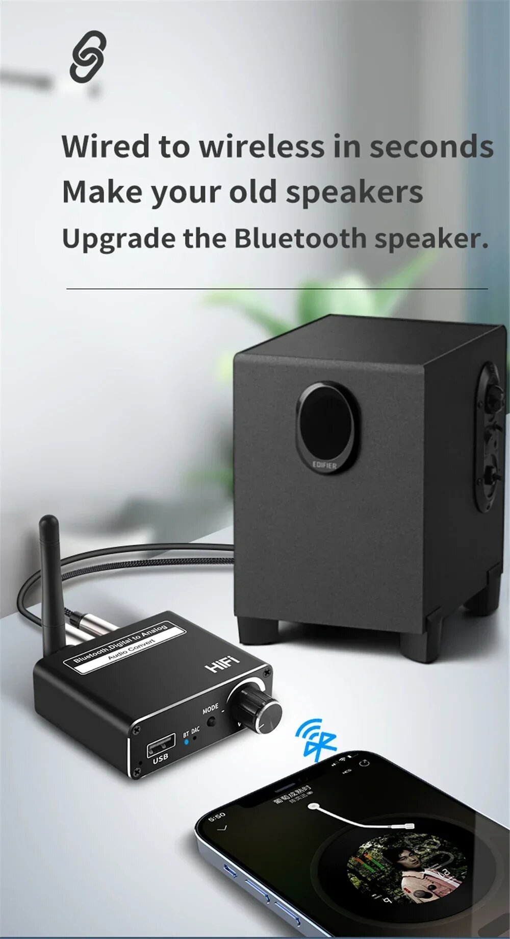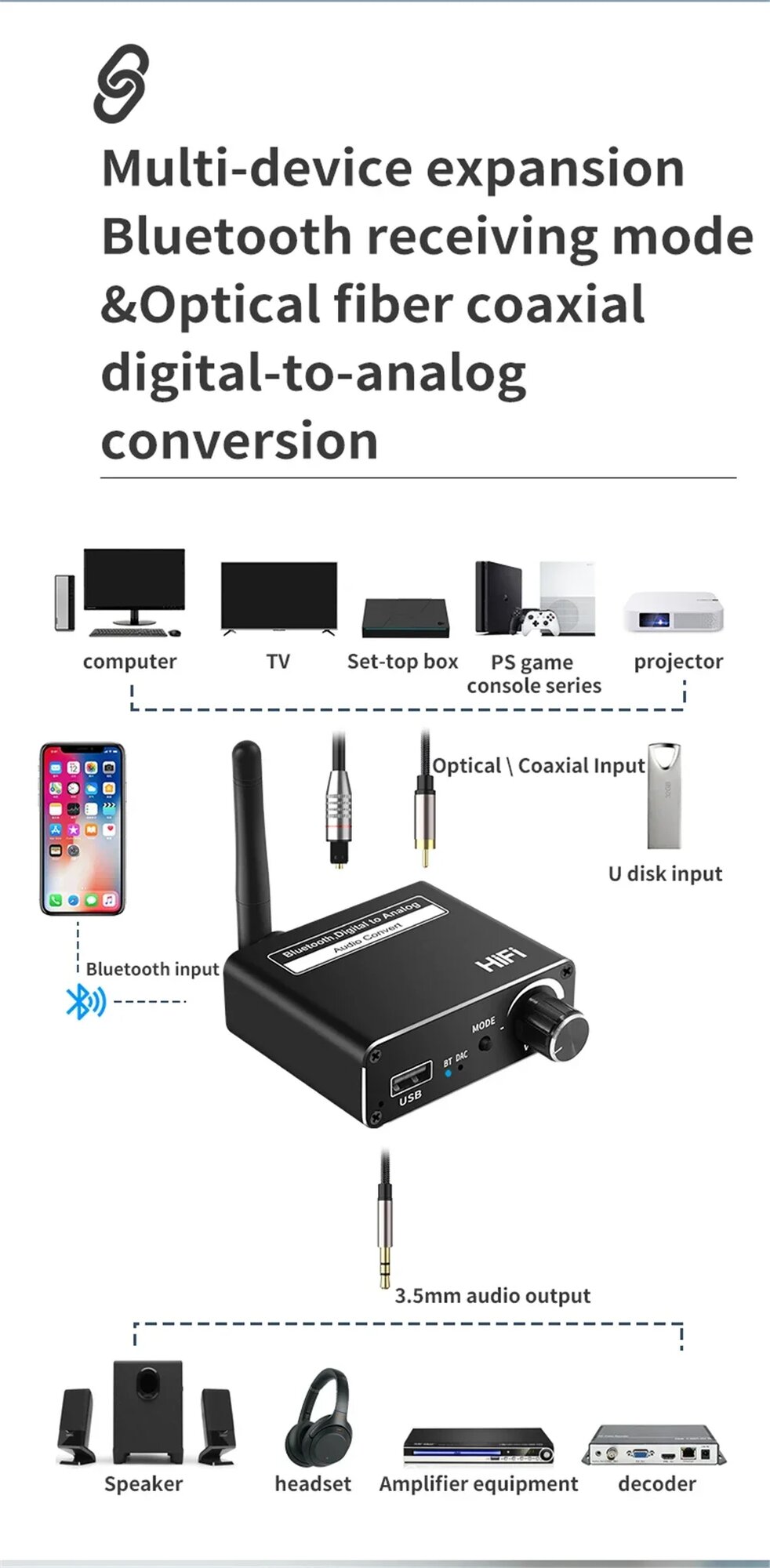 Bluetooth DAC конвертер Spdif оптический вход 3,5 мм выход, Black интересное: