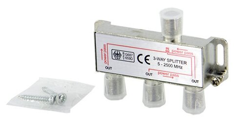 Антенный делитель телевизионного сигнала Сплиттер TV на 3 направления разветвитель под F разъемы 5-2500 MHz Ripo 005-400084 интересное: