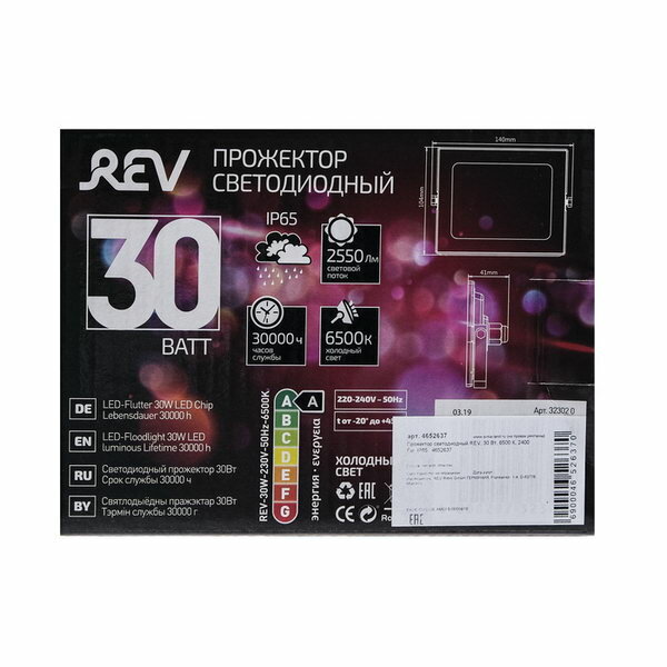 Прожектор REV LED AC 85-265V, 50HZ, 30W, 6500К