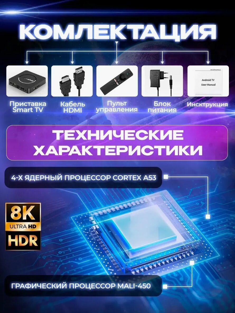 Смарт ТВ приставка для цифрового ТВ, Медиаплеер UHD 8K ULTRA 8/128 ГБ +бесплатное телевидение, Bluetooth пульт интересное: