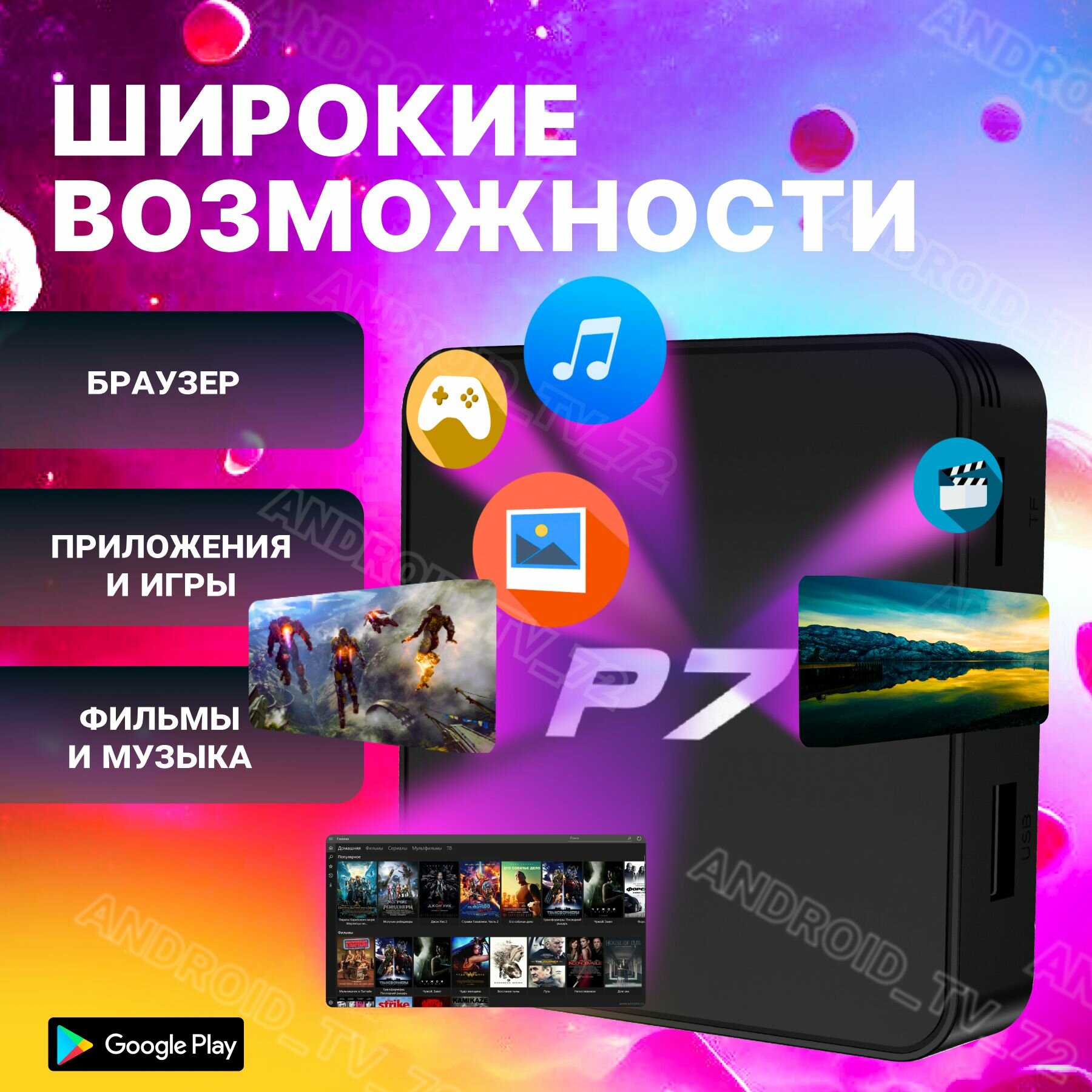 Андроид ТВ приставка Р7 4GB/32GB прошитая WiFi6 интересное: