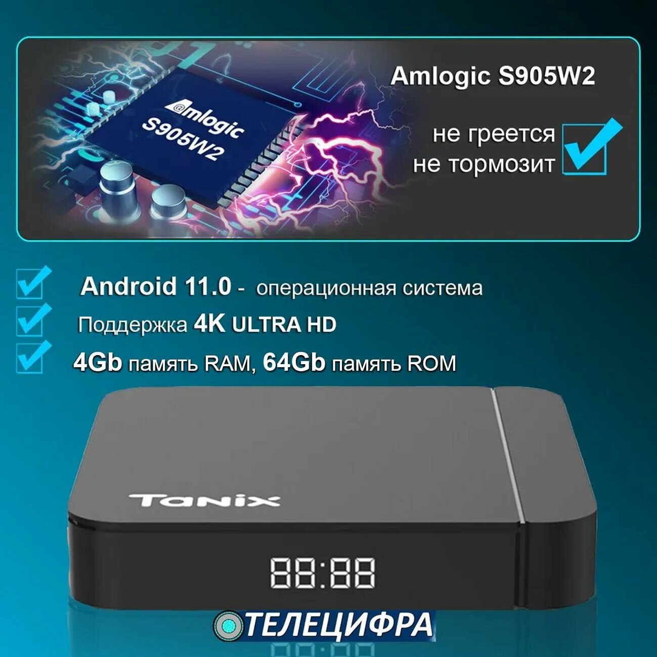 Tanix W2 4/32 + UR02. Медиаплеер с прошивкой SlimBox ATV 4/32 4K /Android 11/WI-FI 2.4&5G + аэромышь
