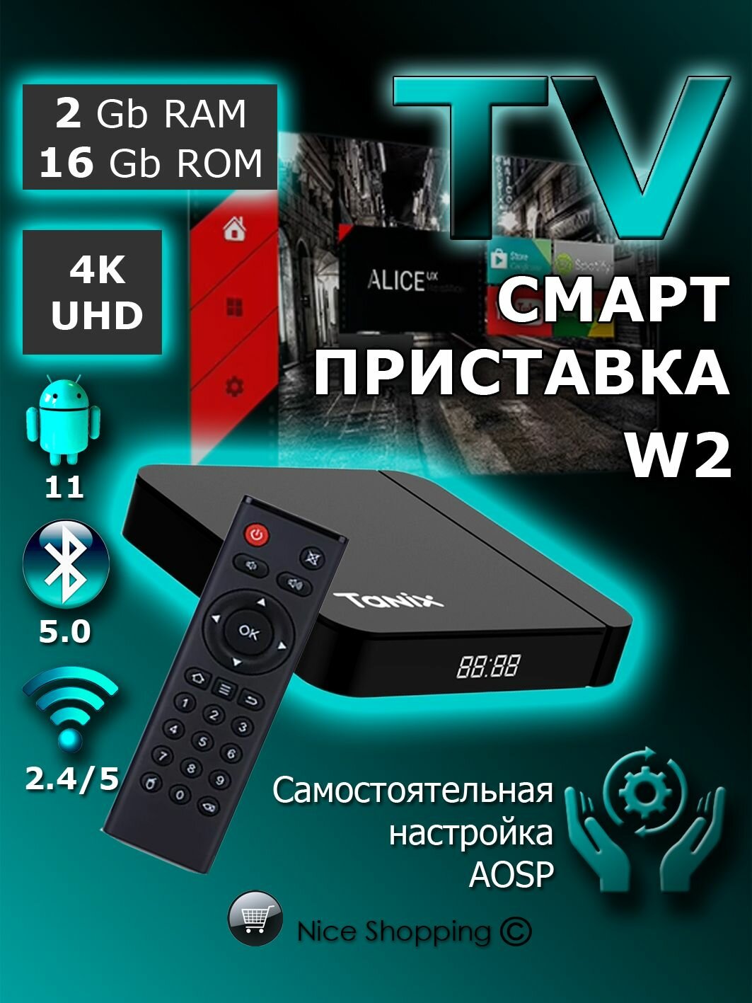 Tanix W2 2/16 AOSP Alice UX Смарт приставка для телевизора 2/16 4K UHD. Android 11, WI-FI 2.4&5G интересное: