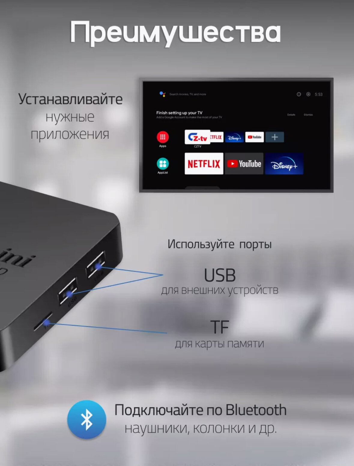 Смарт ТВ приставка, ТВ бокс Transpeed 6K (Андроид 10, 5G, 2/16 Гб) / TV BOX / Андроид / Cмарт приставка