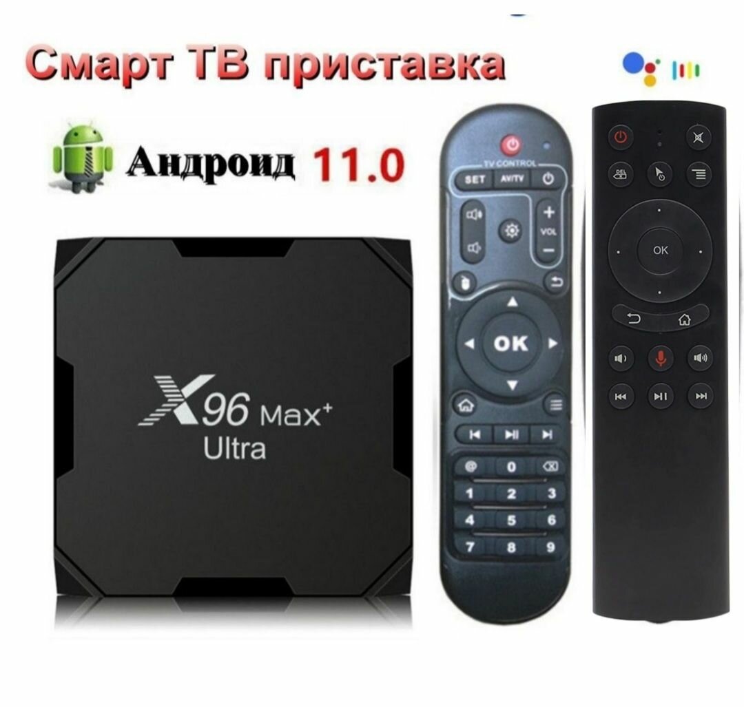 Smart приставка X96 Max Plus Ultra S905X4 Смарт-ТВ-бокс Андроид11.0 HD 8K + аэро пульт с голосовым поиском