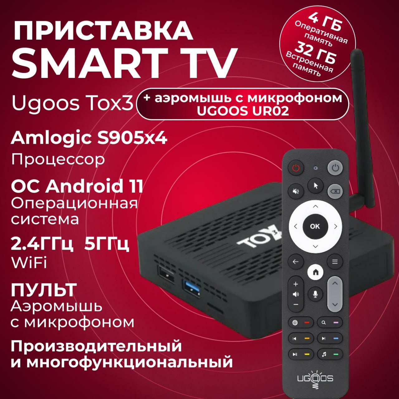 Купить TOX3 4/32 + Ugoos UR02 аэромышь с микрофоном Смарт ТВ приставка для телевизора на Android. 2я ревизия. 2024 года.