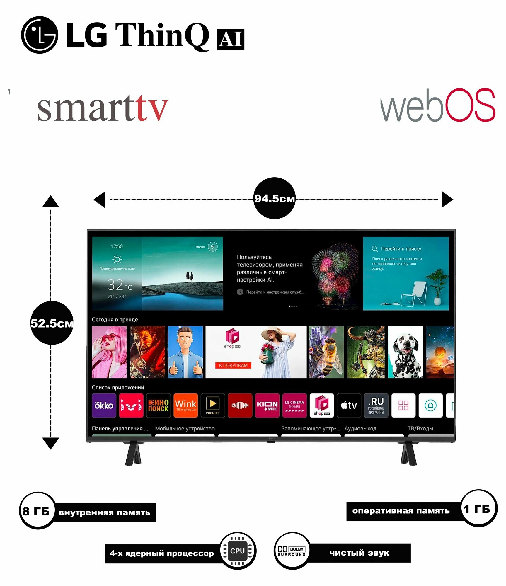 Ниже Вы можете прочитать отзывы на LG-ThinQ AI 42" - ДУ Аэромышь (Указка) - с голосовым управлением и безрамочный экраном., ознакомится с подробными характеристиками, посмотреть интересные обзоры и фотографии на LG-ThinQ AI 42" - ДУ Аэромышь (Указка) - с голосовым управлением и безрамочный экраном..