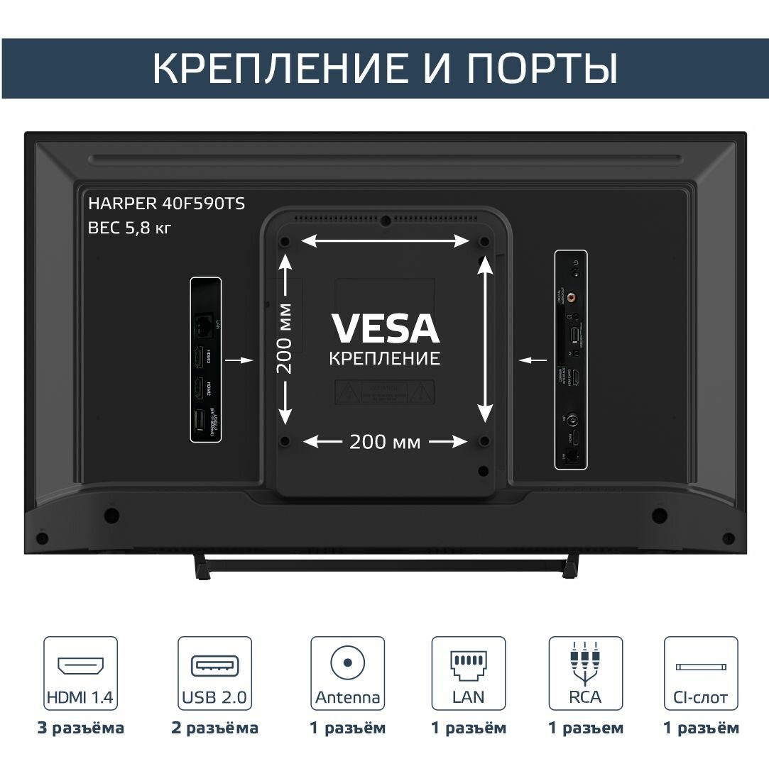 Телевизор Harper 40F590TS / FULL HD / диагональ 40" / 60 Гц / Гарантия 2 года , черный интересное: