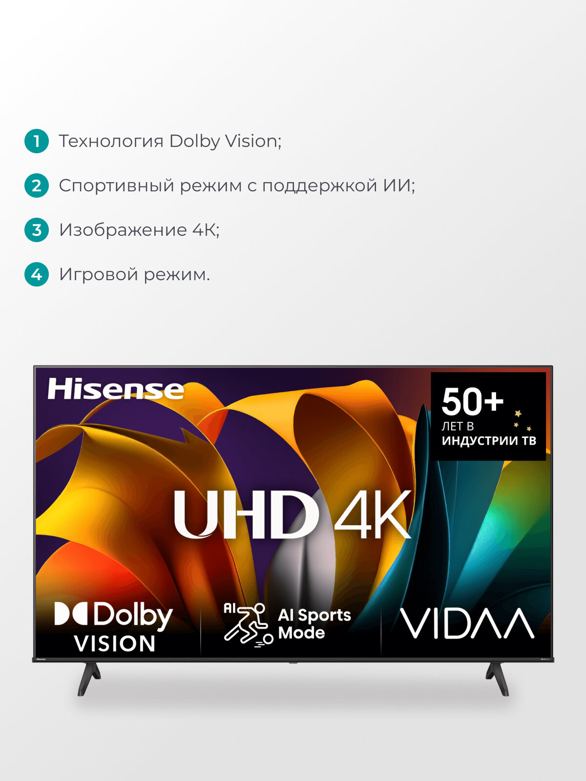 65" Телевизор Hisense 65A6N, 4K Ultra HD, черный, смарт ТВ, Vidaa